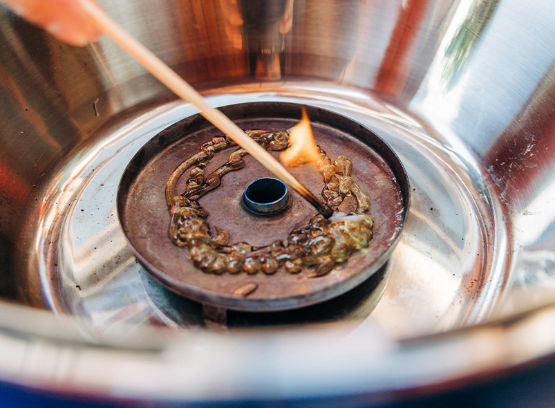 Контейнер для древесного угля LotusGrill — это место, где происходит волшебство. Именно сюда идет древесный уголь для жарки. В зависимости от размера кусочков древесного угля, в контейнер можно поместить от 150 до 250 граммов. Желательно заранее немного разломать кусочки древесного угля, чтобы поместилось как можно больше. Как только контейнер для угля будет заполнен, на него надевается крышка, и вы готовы разжечь уголь.