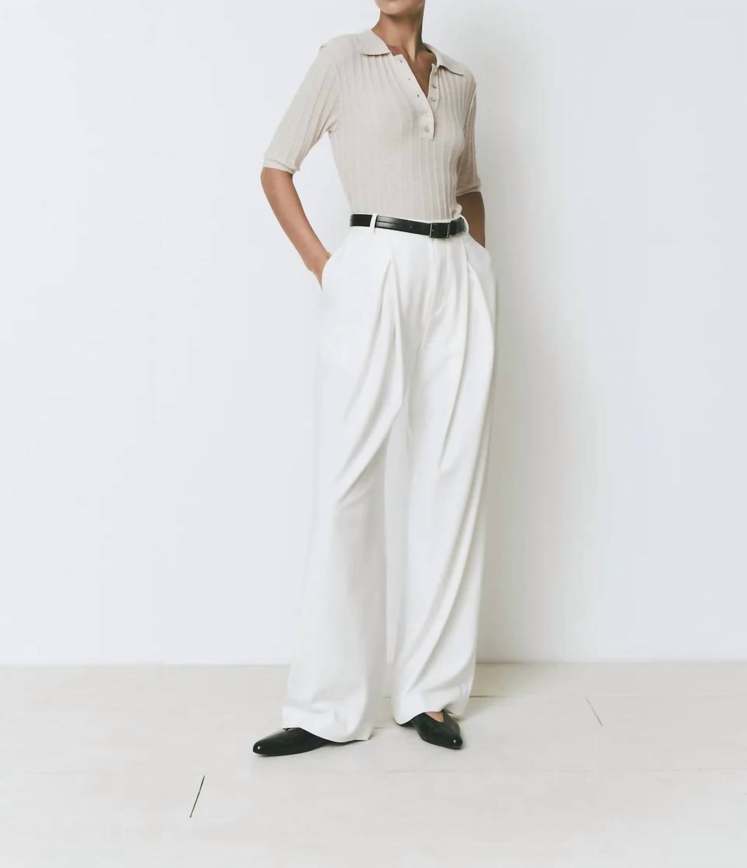 Непринужденно шикарный и несомненно удобный. Изготовлен из гладкого, дышащего вискозного волокна. Предлагает свободную посадку, которая красиво драпируется по телу. Создает элегантный силуэт. Высокая талия, подчеркнутая изящной застежкой на крючки и петли. Обеспечивает надежную и привлекательную посадку. Разработан с широкими штанинами. Не только удлиняет ноги, но и обеспечивает неограниченное движение. Кроме того, функциональные карманы добавляют практичный элемент, не идя на компромисс со стилем. Сделано с тщательным вниманием к деталям. Воплощение изящной простоты и утонченной элегантности.