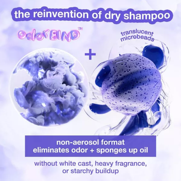 Неаэрозольный сухой шампунь-спрей, который сохраняется до 3 дней*, использует запатентованную биотехнологию odorBIND для обеспечения высокоэффективной очистки без избыточного налета, белого налета и сильных отдушек.