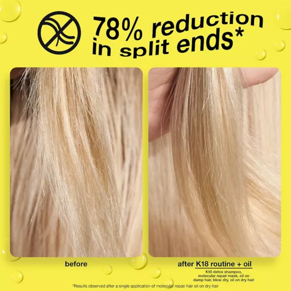 Рекомендации по применению: -Предназначено для использования как на влажных, так и на сухих волосах для максимального эффекта. -Это высококонцентрированная формула. Начните с одной-трех капель и увеличивайте по мере необходимости. -Нанесите на влажные волосы от середины до кончиков перед укладкой. -Нанесите на сухие волосы в качестве завершающего средства. -Можно использовать после несмываемой молекулярной восстанавливающей маски для волос K18 (после четырехминутного времени обработки, продается отдельно) для усиления смягчения и укладки.