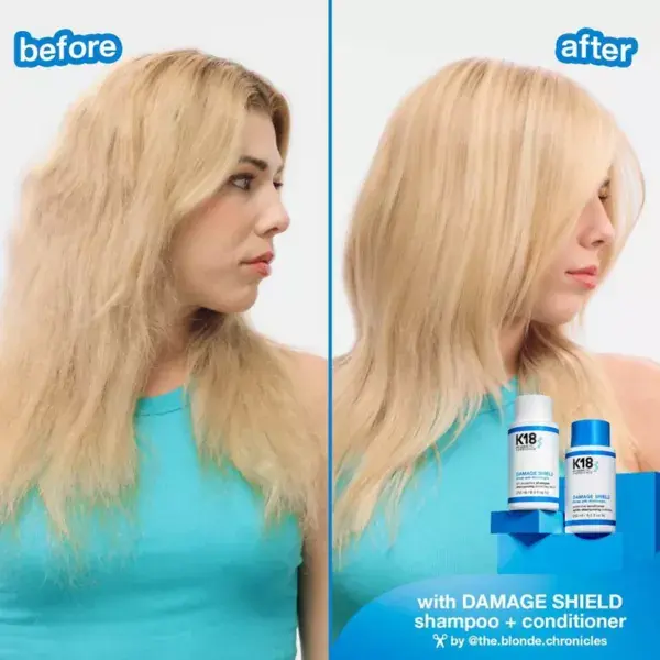 Рекомендации по применению: -После мытья шампунем DAMAGE SHIELD pH Protective Shampoo (продается отдельно) отожмите излишки воды. -Нанесите небольшое количество кондиционера от середины длины до кончиков. -Тщательно смойте. -Для наилучших результатов по восстановлению и профилактике повреждений: используйте детокс-шампунь + несмываемую маску K18 Molecular Repair (продается отдельно) еженедельно для восстановления повреждений, а в дни без мытья используйте шампунь DAMAGE SHIELD (продается отдельно) и кондиционер, чтобы предотвратить дополнительные повреждения.