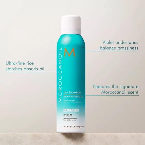 Бренд: Moroccanoil Вес: 154 мл Сухой очищающий спрей для светлых волос, который поглощает жир, отложения и запах, мгновенно освежая волосы. Тип волос: тонкие, средние и густые Текстура волос: кудрявые, вьющиеся, прямые и волнистые Проблемы с волосами: - Фиксация и укладка - Желтизна - Сохранение цвета Основные преимущества: Уменьшает жирность и сохраняет цвет Формула: Спрей Основные ингредиенты: - Аргановое масло: увлажняет и питает волосы токоферолами (витамин Е), незаменимыми жирными кислотами и антиоксидантами. - Рисовый крахмал: натуральный абсорбент, вытягивающий излишки жира. Объявления ингредиентов: Не содержит сульфатов SLS и SLES, парабенов, формальдегидов, агентов, выделяющих формальдегид, фталатов, минерального масла, ретинилпальмитата, оксибензона, каменноугольной смолы, гидрохинона, триклозана и триклокарбан. Этот продукт также поставляется в перерабатываемой упаковке. Что еще вам нужно знать: Этот сухой шампунь мгновенно очищает и освежает благодаря ультратонким рисовым крахмалам, которые поглощают излишки жира и остатки продукта. Он содержит тонкие фиолетовые пигменты, которые помогают сбалансировать желтизну и подчеркнуть лучшее на светлых волосах. Он ароматизирован фирменным ароматом Moroccanoil. Результаты исследований: Основано на независимом лабораторном исследовании:- Сухой шампунь Light Tones удаляет до 85% жира с волос