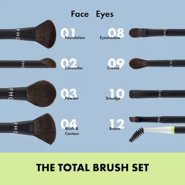 Что еще вам нужно знать: Набор кистей SEPHORA COLLECTION Total Brush Set — это ваш набор для безупречного нанесения всех ваших косметических средств всего одним движением. Он содержит все кисти, которые вам когда-либо понадобятся для полноценного ежедневного или изысканного макияжа от безупречной основы до всех ваших образов для глаз. Ассортимент составлен из лучших кистей Essential Brushes от Sephora, чтобы добиться безошибочных результатов макияжа в два раза быстрее. Кроме того, гладкий черный футляр для макияжа идеально подходит для того, чтобы брать кисти с собой в дорогу.