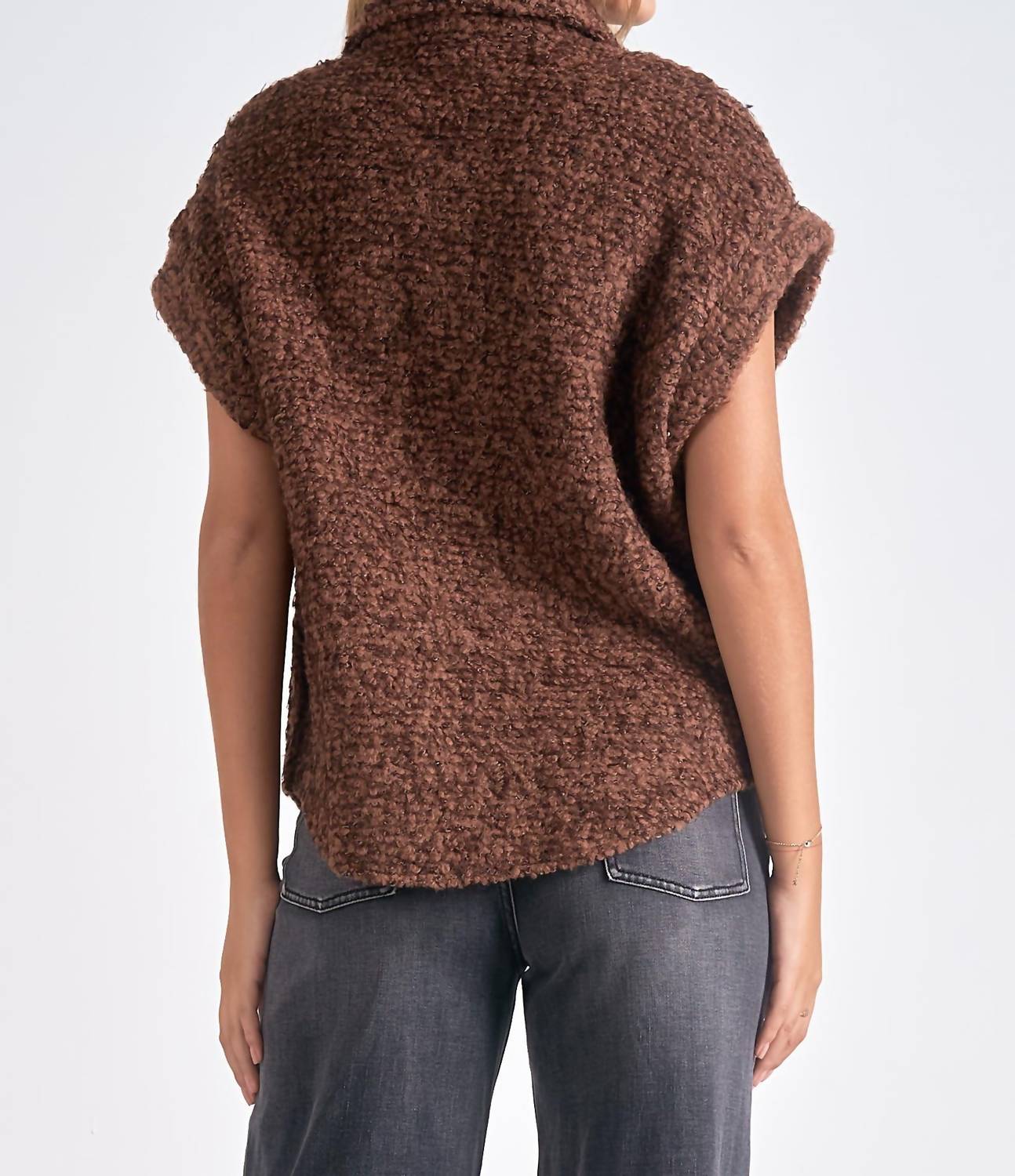 Эта дополнительная многослойная вещь, о которой вы даже не знали! Жилет Button Down от ELAN — стильная и универсальная вещь в восхитительном коричневом меланжевом цвете, призванная поднять ваш гардероб. Благодаря коротким рукавам и изготовленному из роскошной смеси 44% шерсти, 44% полиэстера, 10% акрила и 2% люрекса, его можно носить расстегнутым или застегнутым в качестве изысканного варианта многослойности. Он может похвастаться удобной застежкой-кнопкой и классическим воротником-стойкой. Для оптимального ухода стирайте этот текстурированный жилет вручную и избегайте отбеливания и сушки в стиральной машине; рекомендуется стирка при максимальной температуре 230°F/110°C.