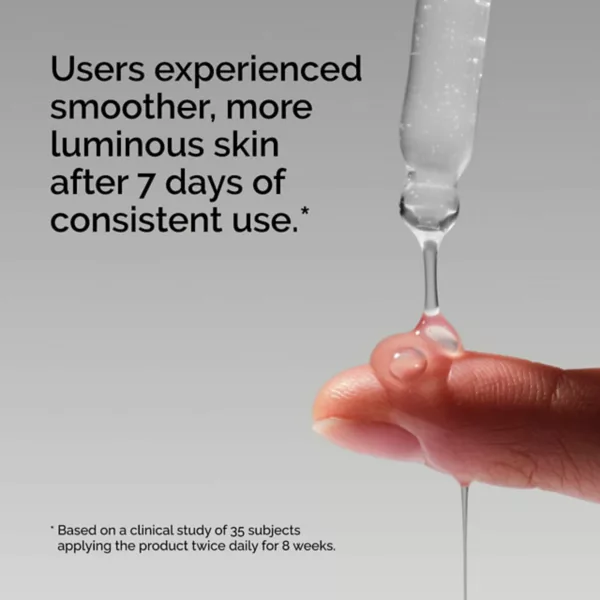 Клинические результаты:Тестирование показывает:Видимое улучшение кожи, гладкость и увлажнение в течение 7 дней.*Делает кожу более гладкой и сияющей.Уменьшает избыток жира в течение 3 дней.*Уменьшает видимость/внешний вид пор в течение 4 недель.*Минимизирует видимость пор.Пользователи отметили более гладкую и светящуюся кожу после 7 дней постоянного использования.*