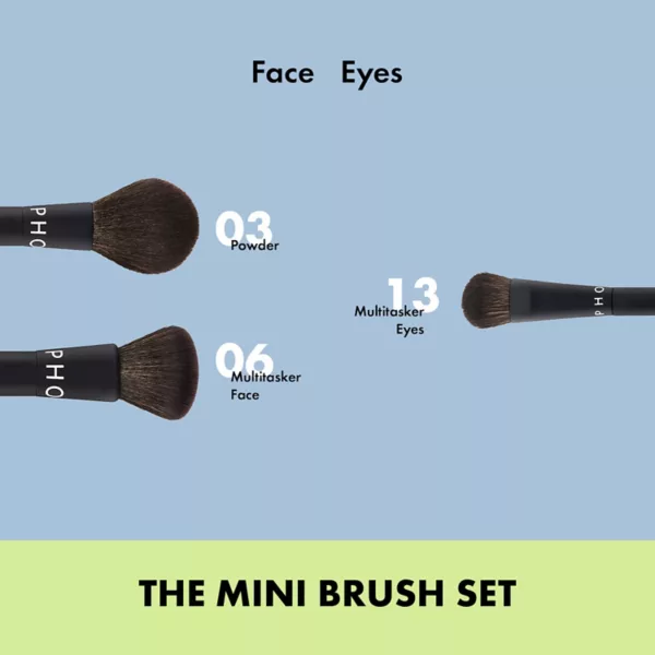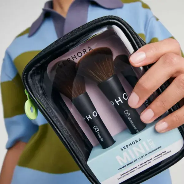 Бренд: Sephora Collection Набор из трех основных мини-кистей из коллекции Essential Brushes для создания идеального повседневного макияжа. Тип щетины: Синтетический Обозначения ингредиентов: Эти продукты веганские. Что еще нужно знать: Это набор из трех основных мини-кистей в дорожной сумке для легкого нанесения макияжа — берите его с собой, куда бы вы ни пошли. В этот набор входят лучшие основные мини-кисти, идеально подходящие для достижения безупречного макияжа в кратчайшие сроки и одним шагом. В этот набор входит: - 03 Мини-кисть для пудры - 06 Мини-многоцелевая кисть для лица - 13 Мини-многоцелевая кисть для глаз - Мини-сумка для макияжа из кожзаменителя