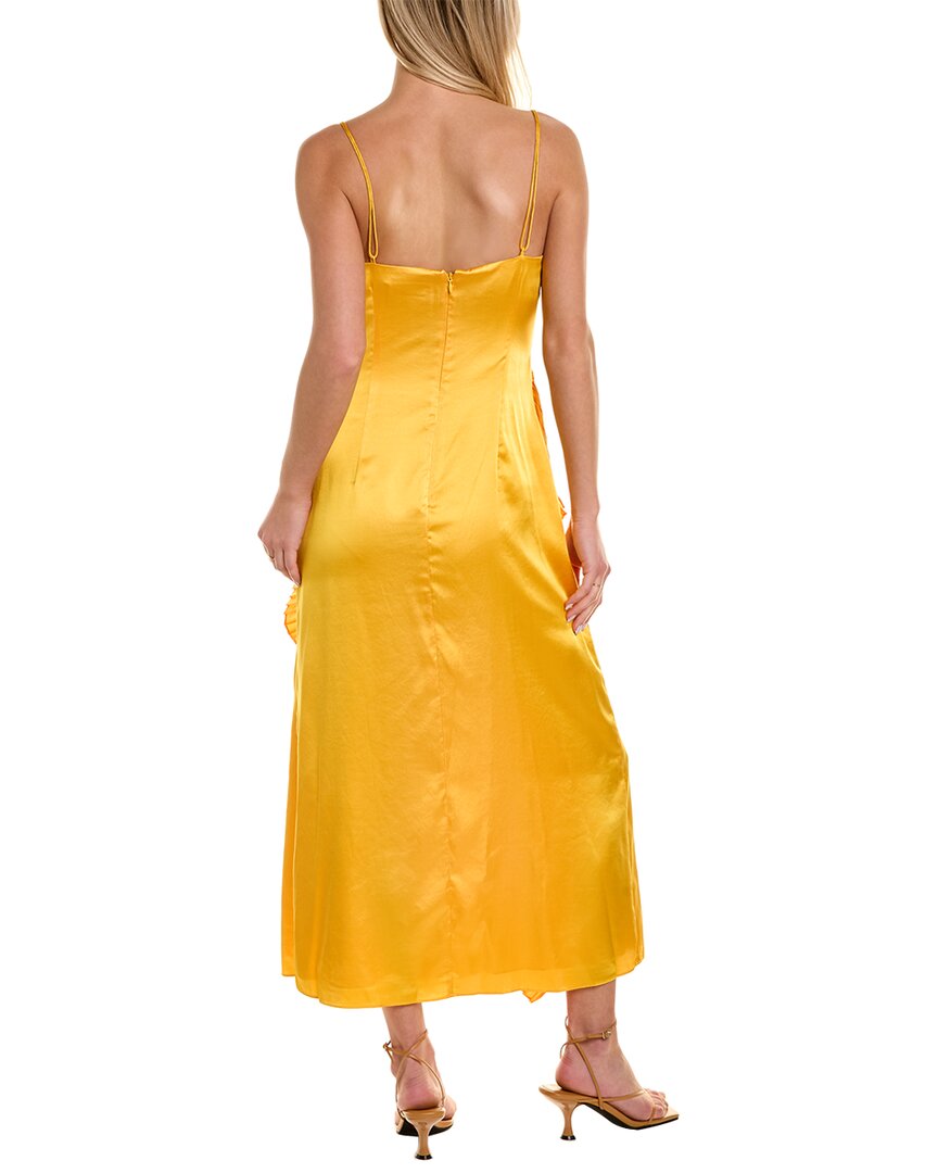 • Платье макси Leena в складку цвета тосканского желтого цвета с бретелями-петлями, V-образным вырезом, отделкой оборками, плиссированными оборками и разрезом спереди по подолу