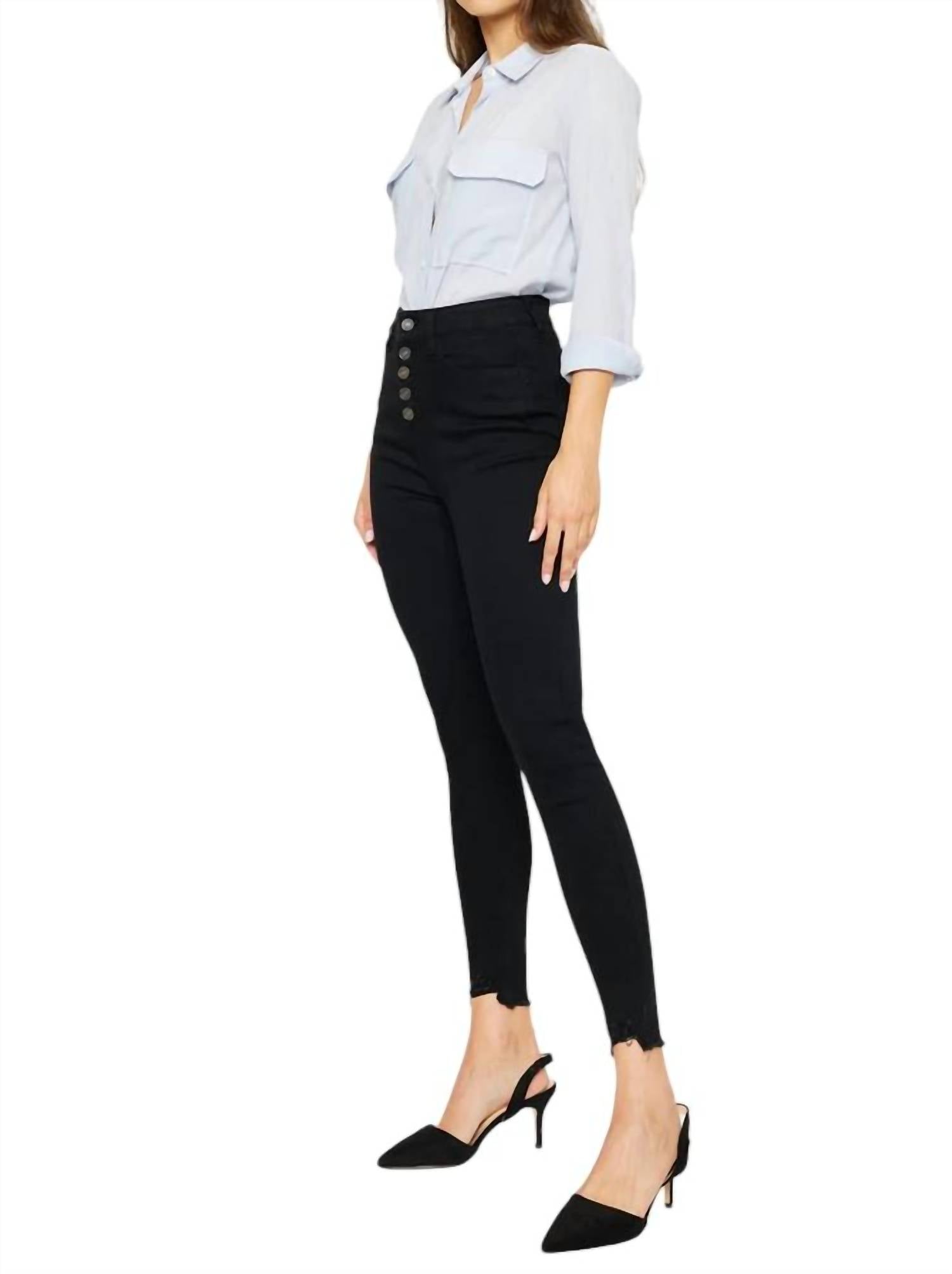 Узкие джинсы, которые одновременно подчеркивают фигуру и удобны. Нам нравится этот стиль, потому что он отлично сочетается с ботинками или без них! Откройте для себя идеальное сочетание комфорта и стиля с Greyson High Rise Super Skinny Jeans от KanCan. Эти черные джинсы из денима имеют высокую посадку с посадкой 11 дюймов и облегающий силуэт от бедра до щиколотки. В состав входит 80% хлопка, 11% полиэстера, 6,6% модала и 2% спандекса, что обеспечивает прочность и повседневный комфорт. Особенности включают в себя 28-дюймовый внутренний шов, пять обычных карманов и открытую застежку на пять пуговиц, все это подчеркивается потертым нижним краем для нотки авангардной привлекательности. Идеально подходит для тех, кто ищет гладкую и удлиненную облегающую посадку по ноге.