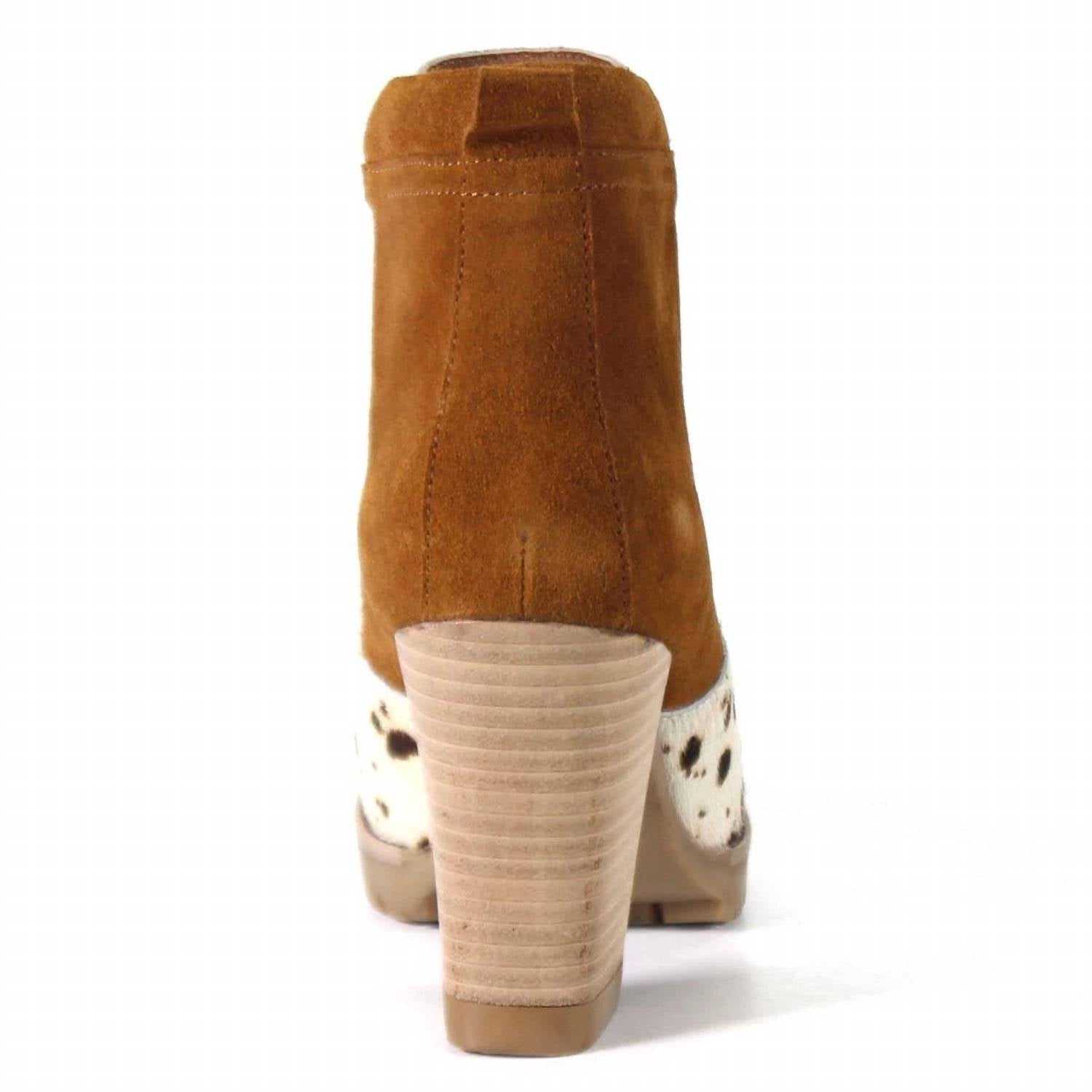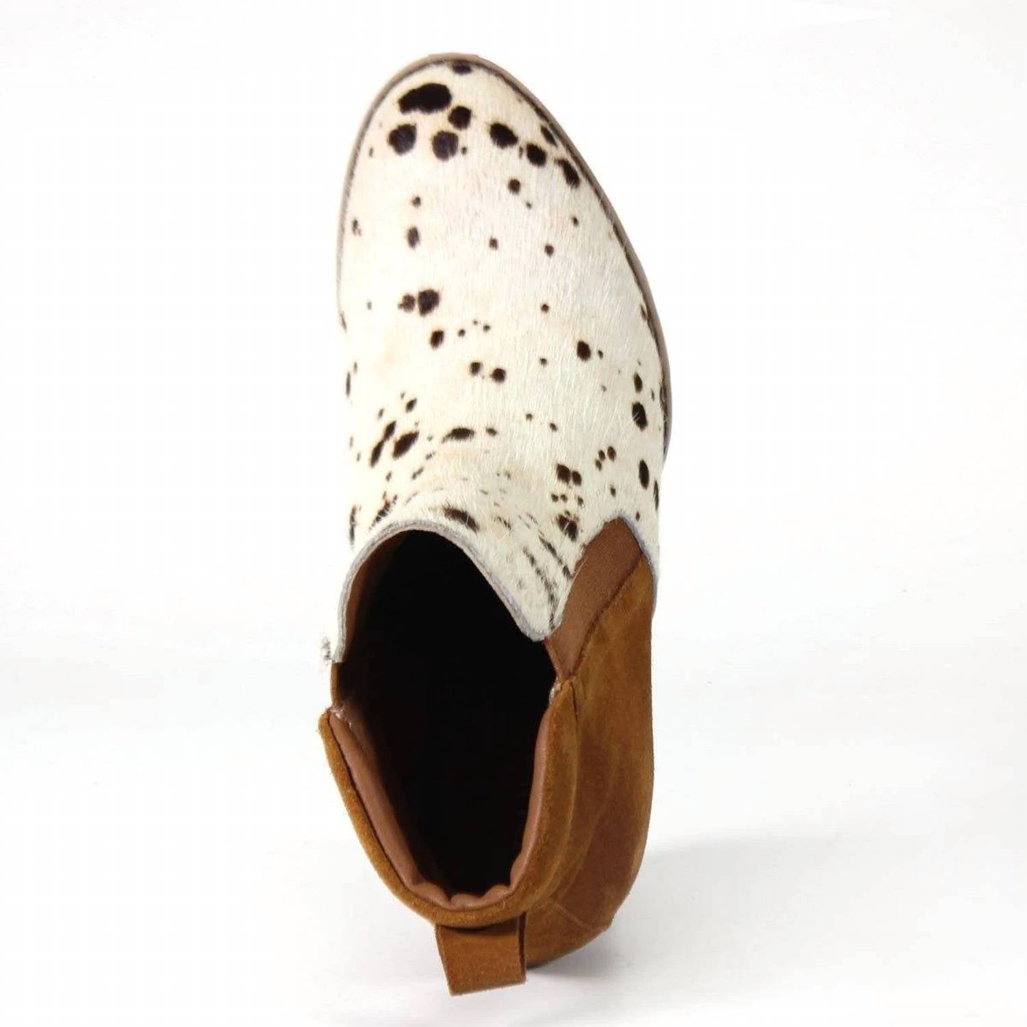 Ботильоны из принтованного коровьего меха. Боковая молния. Эластичная вставка. Слегка амортизированная стелька. Высота голенища 5 1/2 дюйма. Каблук 3 1/2 дюйма. Верх из кожи. Подошва из искусственного материала. Настоящий окрашенный коровий мех. Происхождение меха - Индия. Из-за особенностей кожи/замши возможны небольшие различия в цвете кожи, это никоим образом не считается дефектом. Это неотъемлемые характеристики кожи/замши, которые улучшат индивидуальный вид вашего изделия.