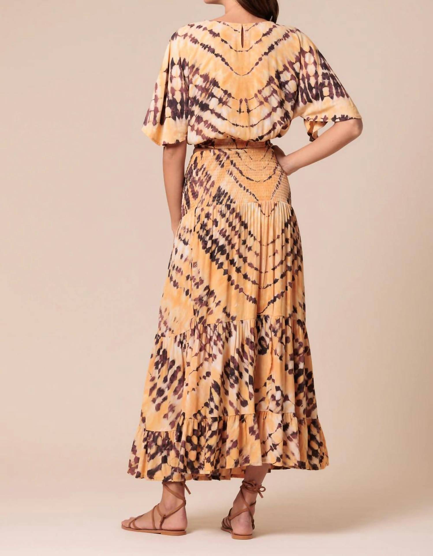 Это изделие изготовлено из тщательно отобранной креповой ткани LENZING AG Rainforest Alliance Certified. Рисунок изделия вдохновлен традиционной техникой tie-dye, устойчивой окраски, выполненной вручную на Бали, Индонезия. Верх и низ продаются отдельно! 100% вискоза Присборенный пояс Длинный рукав с оборкой Сделано в Индонезии Размеры изделия (взяты с размера Small - ) Длина от плеча до подола - 22 дюйма Инструкции по уходу - Ручная стирка в холодной воде. Не отбеливать. Сушить на горизонтальной поверхности в тени. Гладить в прохладной воде. Не подвергать химчистке. *Обратите внимание, что это изделие прошло специальную процедуру tie-dye, которая приводит к изменению оттенка и цвета. Эти изменения являются намеренными и дополняют уникальные характеристики этого изделия.