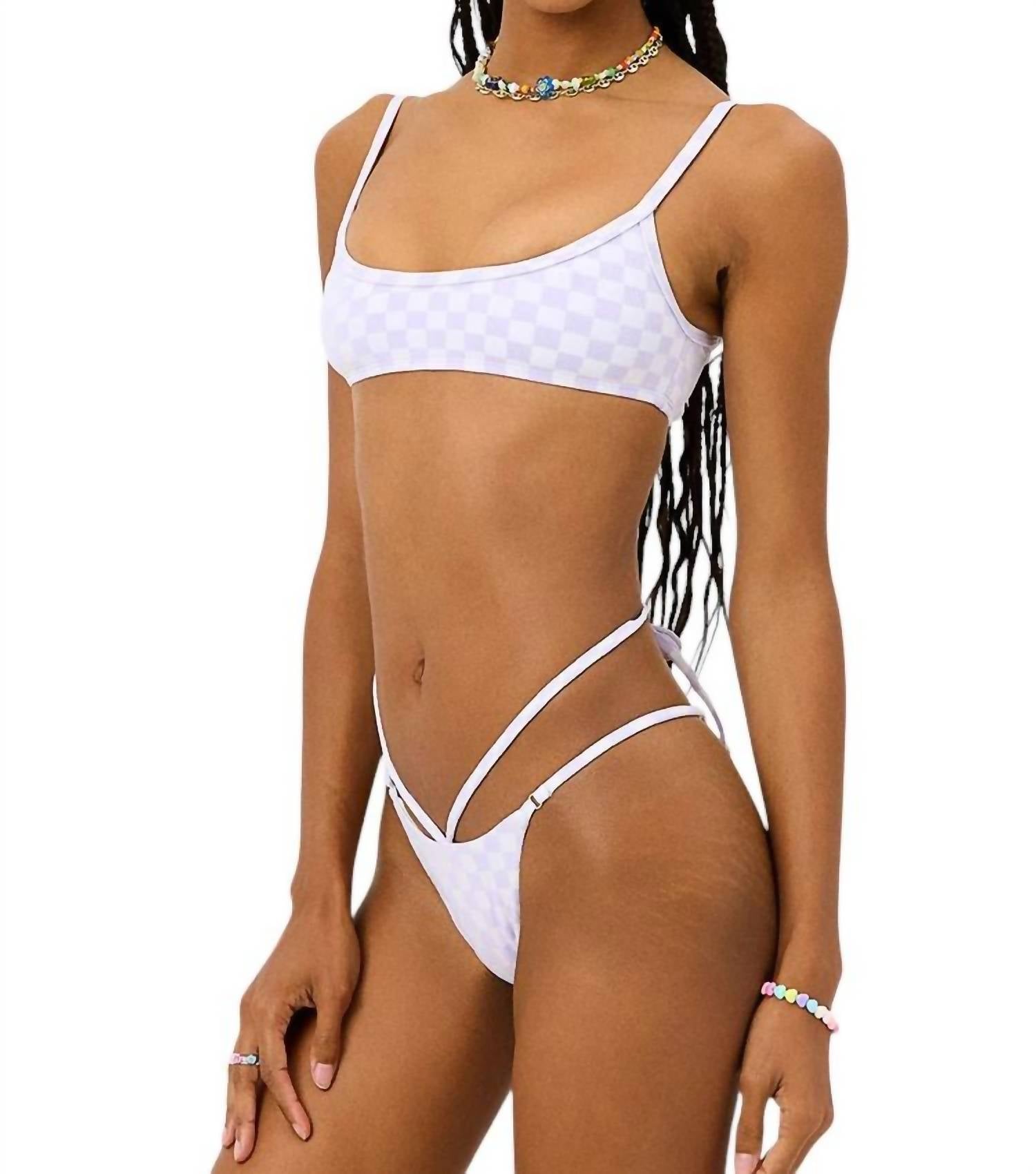Этот очаровательный купальник идеально подходит для расслабленных моментов у бассейна, а в сочетании с струящейся юбкой легко превращается в идеальный наряд для ужина на закате. Поднимите свою коллекцию купальников с помощью плавок Layla Checkered Jacquard Bottom от Frankies Bikinis. Эти шикарные плавки бикини имеют двойную завязку и завязку-обертку из яркой клетчатой ​​фиолетовой жаккардовой ткани. Изготовленный из 51% полиамида, 37% полиэстера и 12% спандекса, он обеспечивает откровенное покрытие для смелого, но изысканного пляжного образа. Разработанный для идеальной посадки, этот предмет является обязательным для любого стильного купального ансамбля.