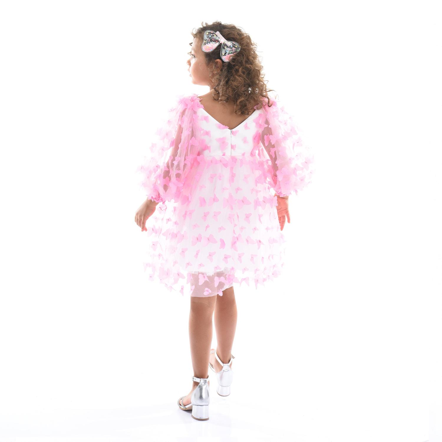 Изготовленное из 100% полиэстера, это платье прочное и удобное. Оно предназначено только для химчистки, сохраняет свой первоначальный вид с течением времени. В целом, платье Pink Bell Mariposa Tulle Dress сочетает в себе элегантность, комфорт и причудливые элементы дизайна, гарантируя, что ваш ребенок будет выглядеть и чувствовать себя особенным.