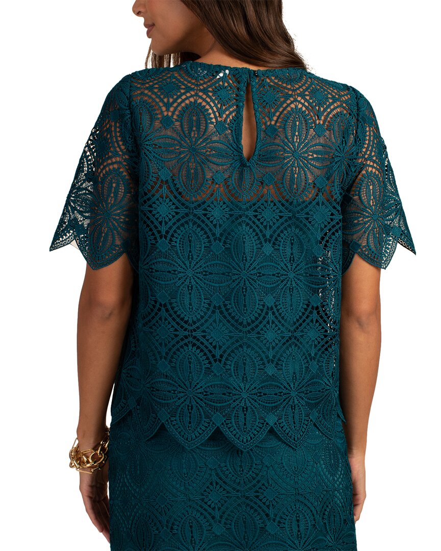 Представляем топ Trina Turk Khalida, шикарное и стильное дополнение к вашему гардеробу от известного бренда Trina Turk. Эта современная и яркая вещь черпает вдохновение из многокультурного микса Калифорнии, отражая уникальную и яркую эстетику. Топ Khalida в цвете Pool Teal имеет кружевной верх, круглый вырез, прозрачные короткие рукава, декоративный подол и замочную скважину сзади с застежкой на пуговицу и петлю. Изготовленный из 100% полиэстера, этот топ составляет около 24 дюймов от плеча до подола и подлежит только сухой чистке. Поднимите свой образ с помощью этой эффектной вещи, сделанной в США с качеством и стилем, которыми славится Trina Turk.