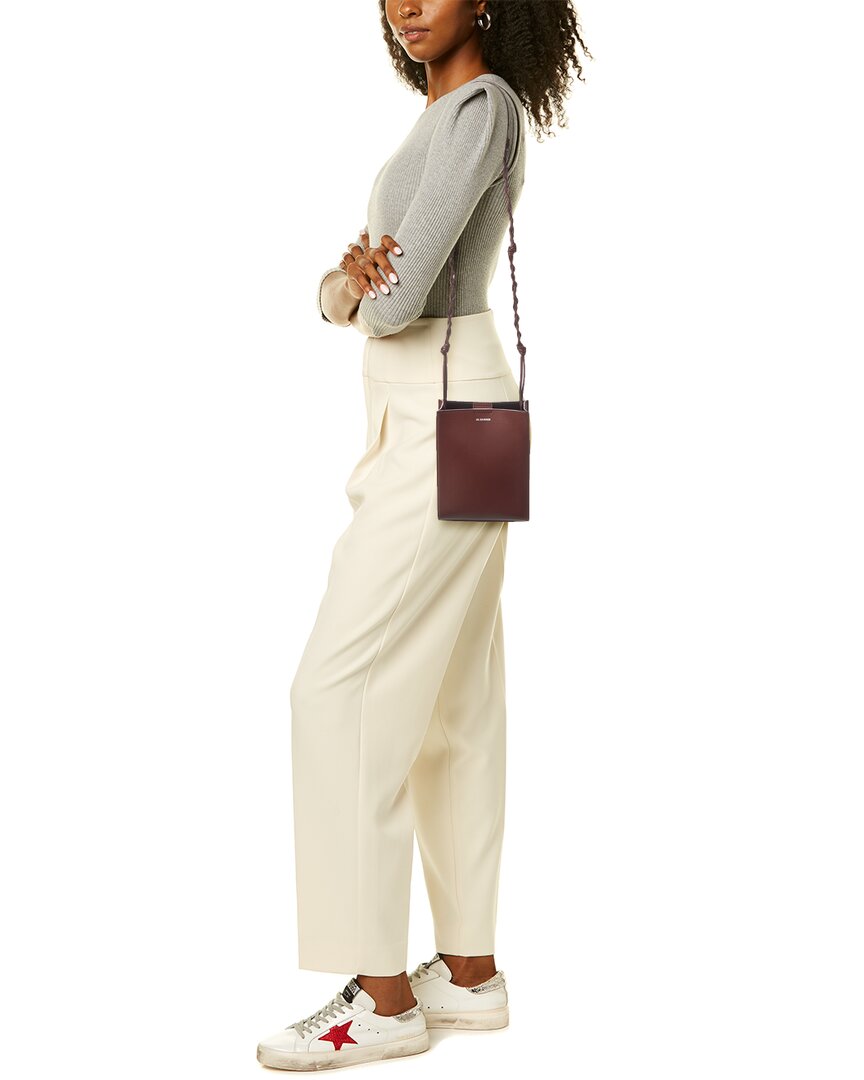 Кожаная сумка через плечо с логотипом Jil Sander, коричневый