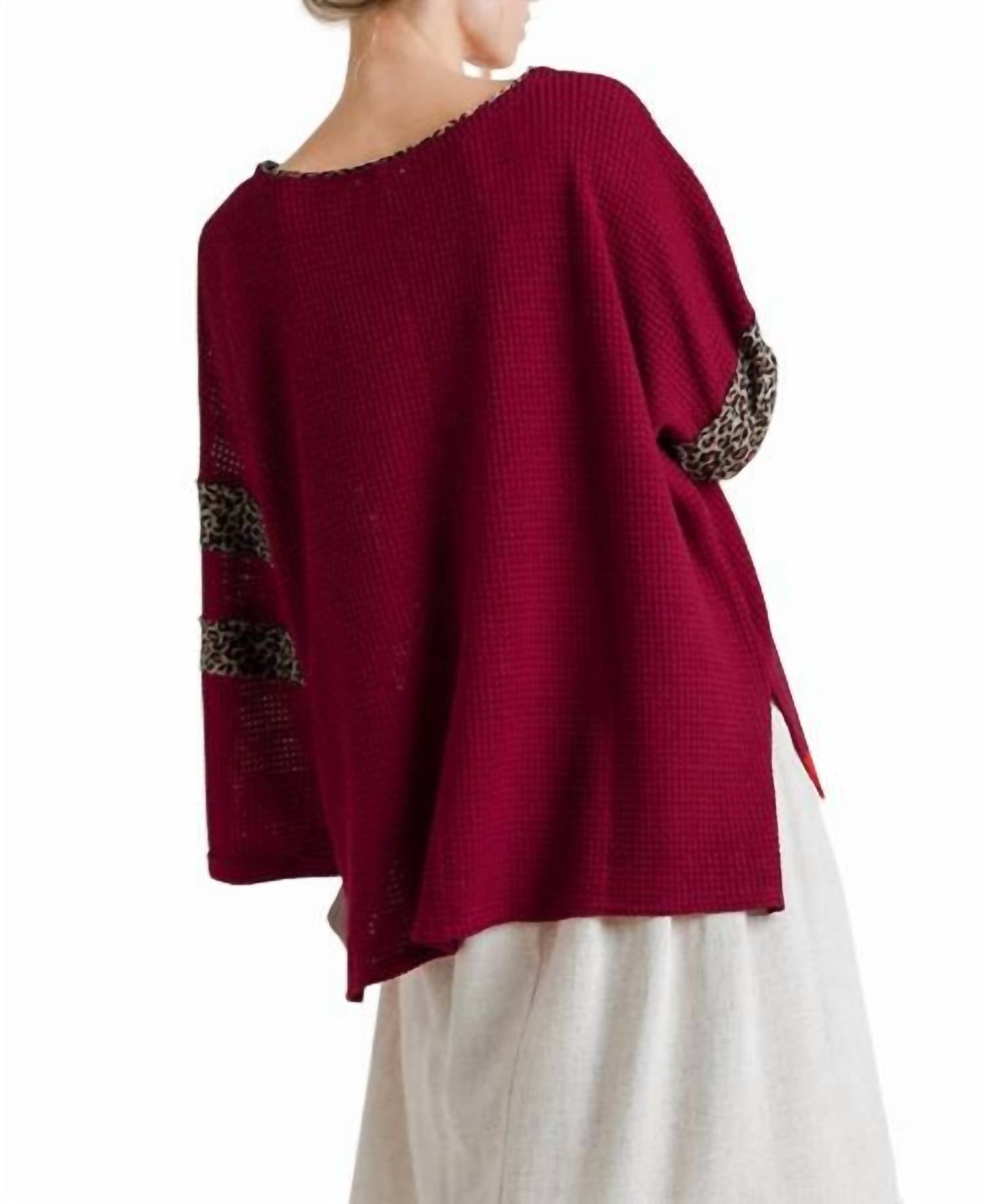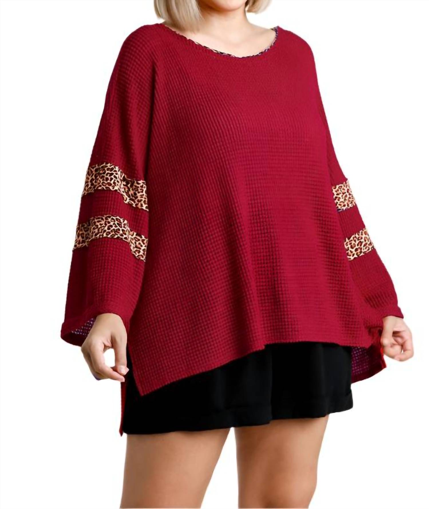 Этот топ имеет круглый вырез, свободную вафельную вязку (полупрозрачную), леопардовую отделку, боковые разрезы и асимметричный подол. Он имеет свободный силуэт. Маленькая грудь 50" Длина 26". Средняя грудь 52" Длина 26". Большая грудь 54" Длина 26". XL Бюст 58" Длина 29". 1X Бюст 60" Длина 29". 2X Бюст 62" Длина 29". Свободный силуэт. 60% полиэстер, 34% вискоза, 6% спандекс. Импортируется. Ручная стирка в холодной воде.