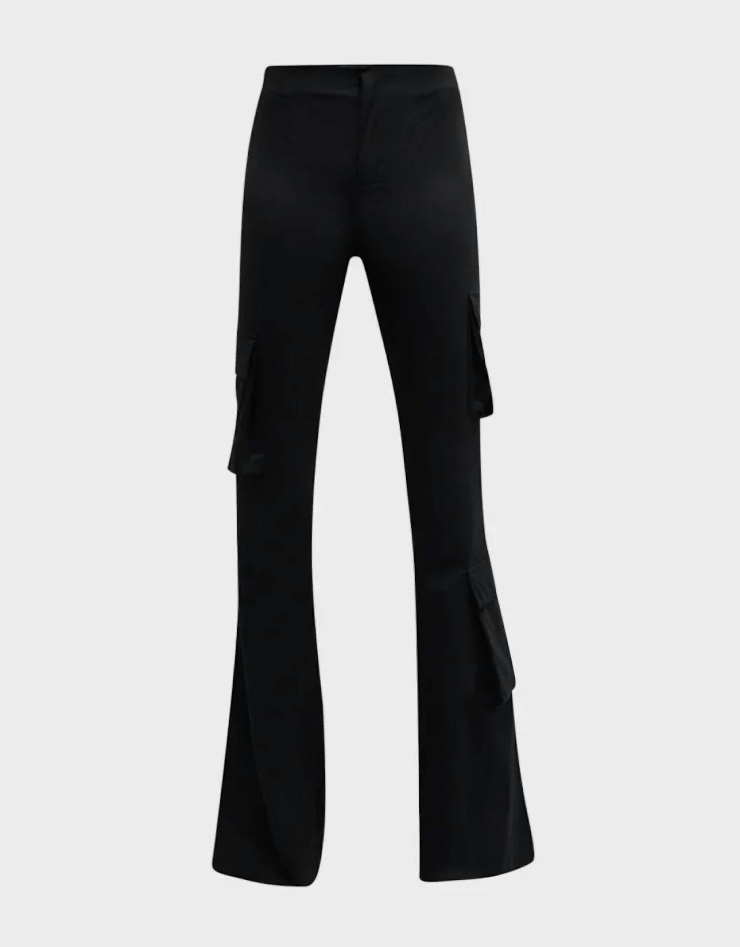 Расклешенные брюки из эластичной тафты с карманами-карго по всей длине. Средняя посадка. Облегающие по бедрам; расклешенные от колена до щиколотки. Длина до щиколотки, потайная застежка, боковые карманы, карманы с клапанами, расклешенный крой. МАТЕРИАЛ - 58% полиэстер / 34% полиамид / 8% эластан. ЦВЕТ - черный. РАЗМЕР И МЕРЫ - Соответствует размеру, берите свой обычный размер.