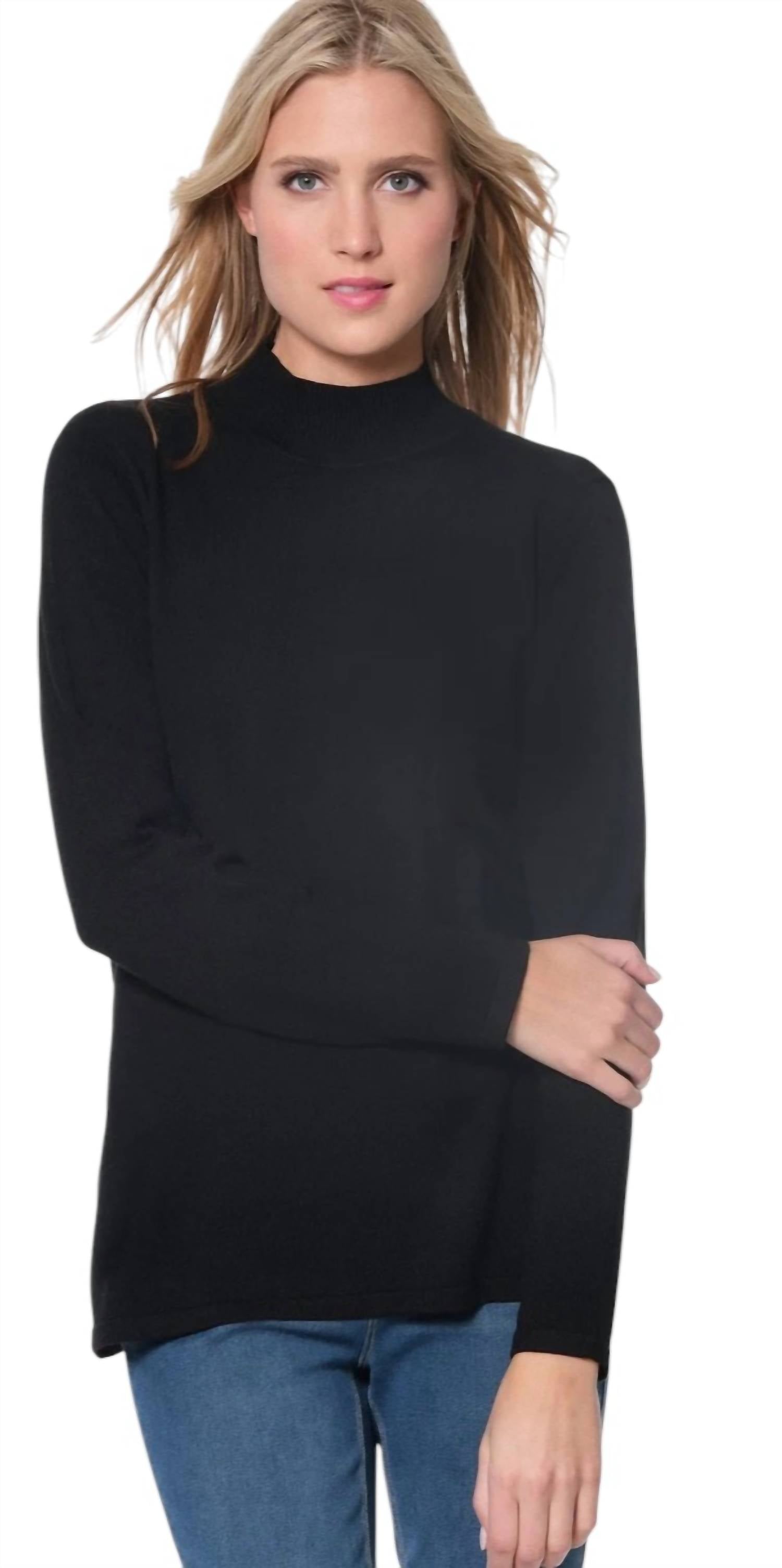 Длинный рукав, который можно носить с джинсами, юбками, ну... практически с чем угодно!Украсьте свой гардероб свитером Mock Neck от Multiples, элегантным дополнением, которое идеально подойдет для любого случая. Эта черная вещь имеет длинные рукава и классический дизайн с воротником-стойкой, что делает ее непринужденно шикарным выбором для прохладных дней. Благодаря своему однотонному цвету этот свитер предлагает универсальные варианты стилизации для различных нарядов. Разработанный специально для женщин, этот предмет одежды обещает как комфорт, так и стиль.