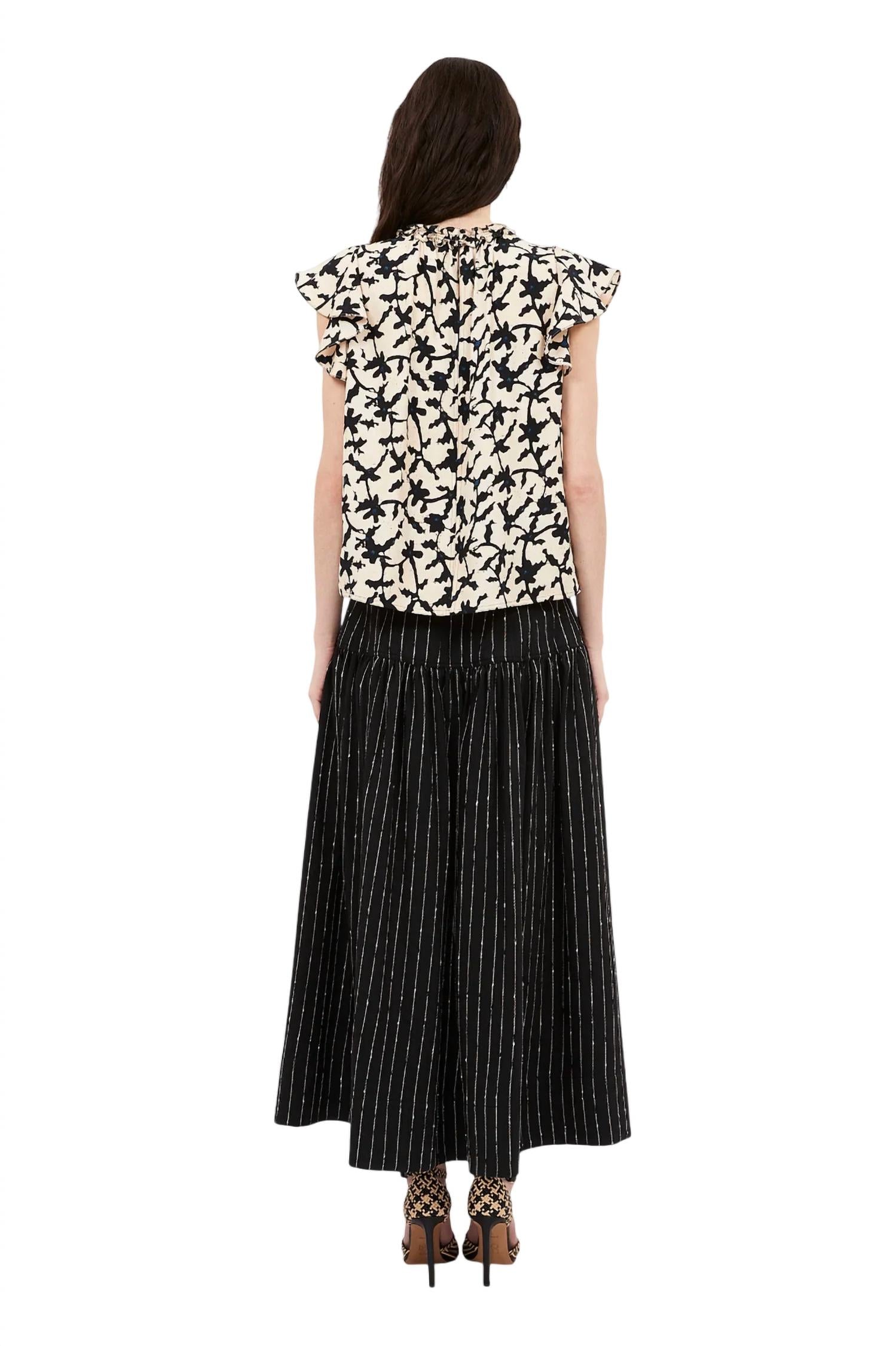 Представляем топ Julia от Ulla Johnson, шикарную вещь, созданную для непринужденной элегантности. Эта женская блузка с рукавами-крылышками и круглым вырезом, выполненная из 100% вискозы цвета Moonstone. С изящной контрастной строчкой и развевающимися оборками, она воплощает свободный крой и классический черно-белый цветочный принт. Верх застегивается на замочную скважину на пуговицах сзади, что идеально подходит для придания женственности вашему гардеробу.