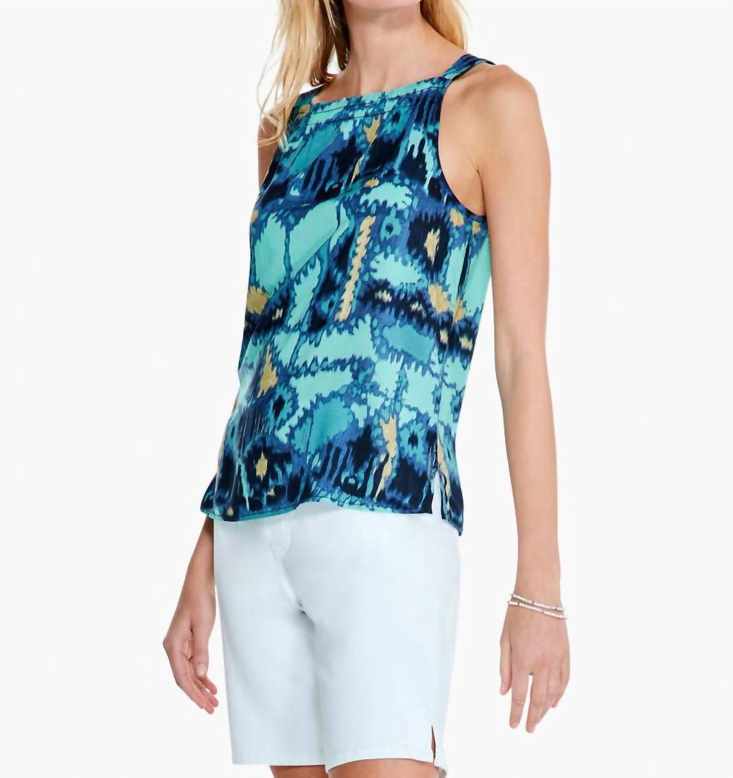 Охладитесь в самый длинный день в году в классическом летнем топе. Принт — классика из архивов Nic + Zoe, получившая новую жизнь в этой супервесёлой женственной форме. Сборки вдоль линии горловины и смелые бретели оживляют образ и привлекают внимание. Экологично сделано из вискозы EcoVero. Сделано осознанно — сертифицировано LENZING ECOVERO изготовлено из экологически чистых источников, а техническая вода перерабатывается. Сборки на линии горловины. Свободная посадка. Квадратный вырез. Без рукавов. Посадка на бедрах