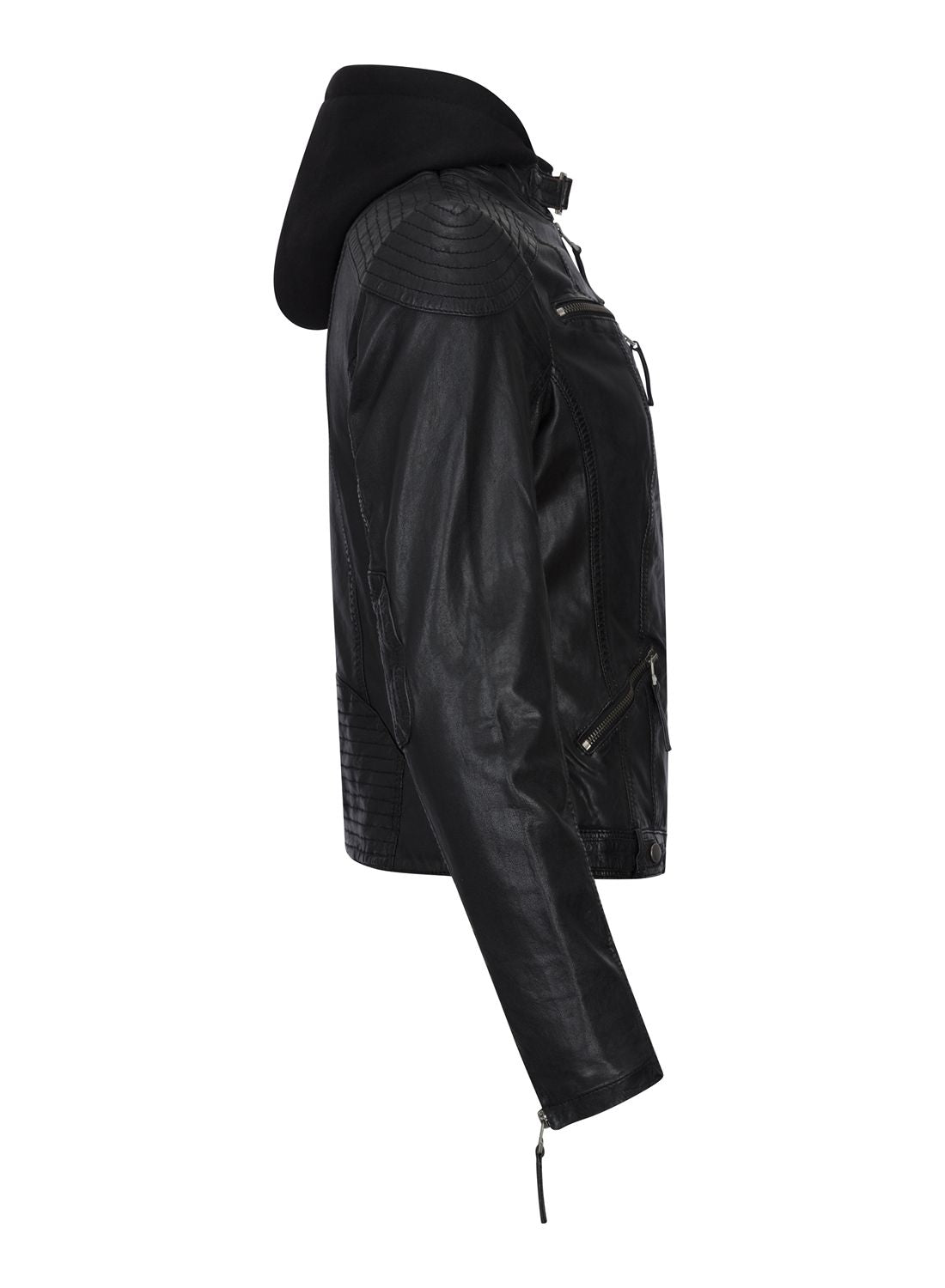 Кожаная куртка байкера с капюшоном TruClothing, черный