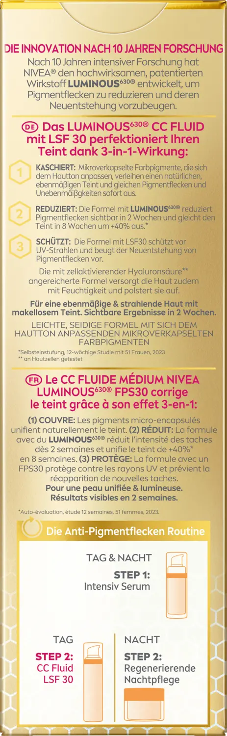 Дневной крем NIVEA CC Creme Luminous 630 Getöntes Fluid MIttel LSF 30, 40 ml