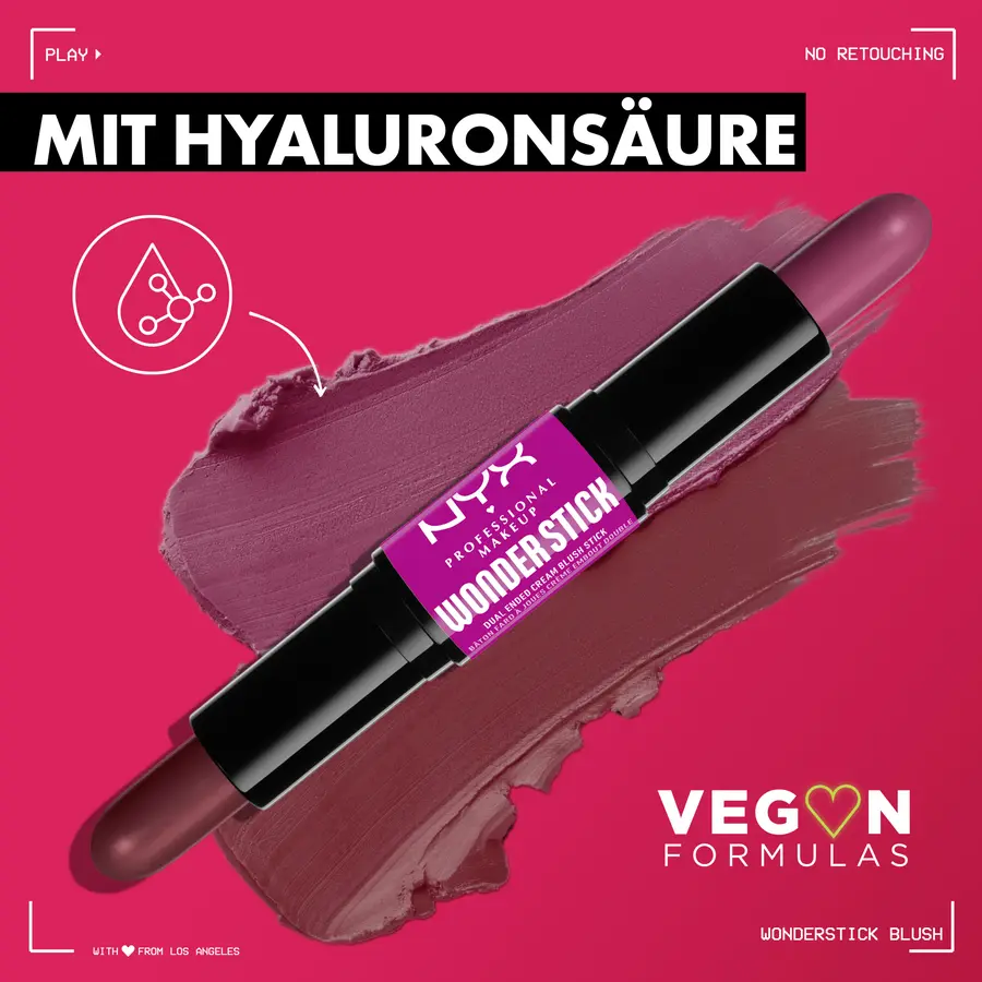 Wonder Stick Blush от NYX Professional Makeup отличается кремовой текстурой, а также двумя сторонами с различными нюансами, которые не только создают эффект лифтинга, но и осветляют кожу. Увлажняющая формула с гиалуроновой кислотой прекрасно сочетается с кожей, и ее легко наносить и растушевывать. При этом две стороны сочетаются по цвету с любым оттенком кожи, придавая ей мерцающий оттенок. Кроме того, палочку для румян можно использовать как отдельно, так и в сочетании с пудрой Sweet Chickes Powder Blush для придания дополнительного мерцающего блеска или матового оттенка.