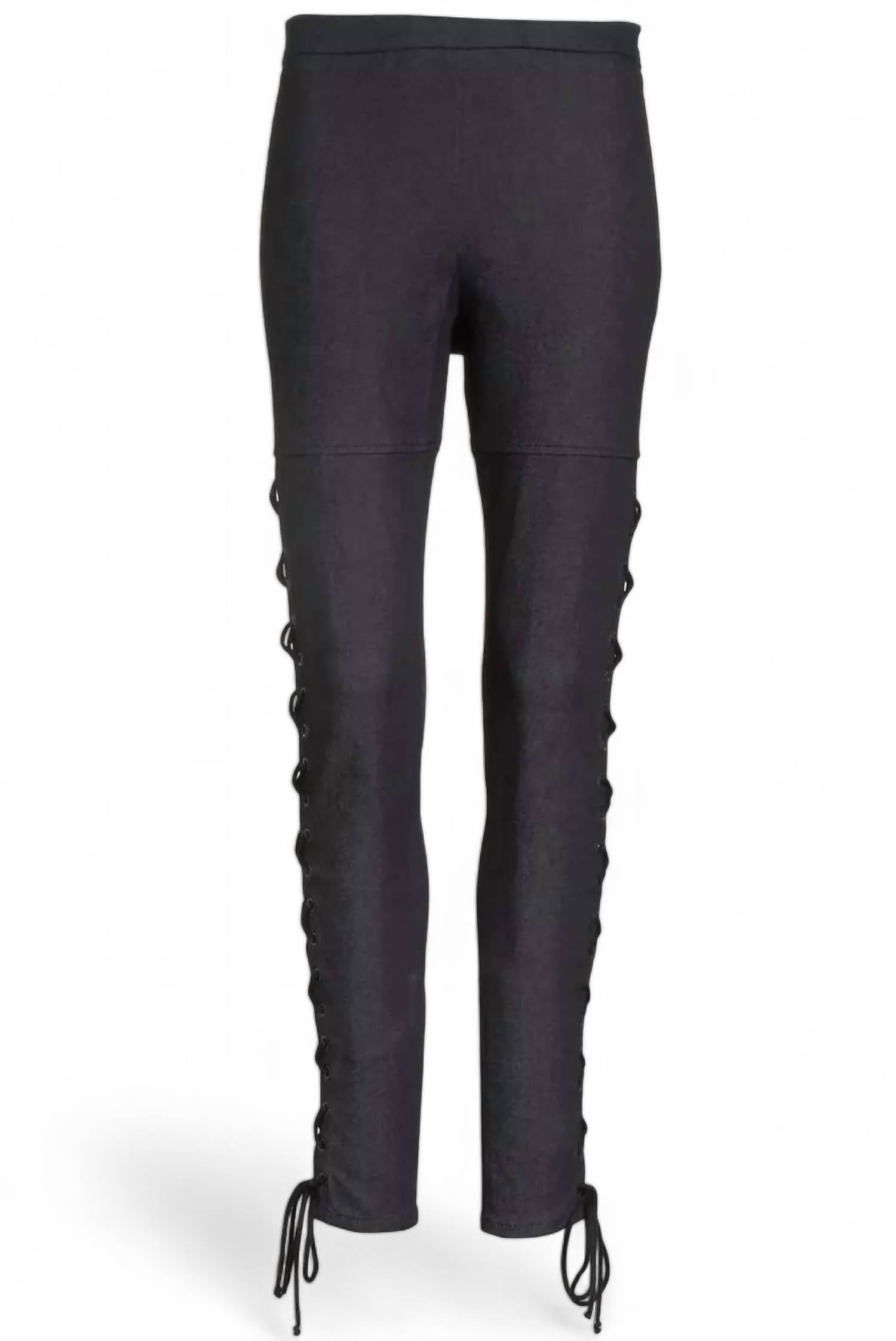 Идеальные узкие брюки для стильных ботинок этого сезона! Эти брюки из эластичного денима, похожие на леггинсы, имеют тонкие шнурки, которые фиксируют разрезы по бокам, обеспечивая суперузкую посадку. Они имеют скрытую застежку-молнию сбоку и облегают узкие штанины, с боковыми деталями шнуровки и завязками на щиколотках. Изготовленные из эластичной джинсовой ткани, они состоят из 74% хлопка, 24% полиэстера и 2% спандекса, и их можно стирать в стиральной машине. Длина внутреннего шва составляет 27 дюймов, а подъем — 9 3/4 дюйма.