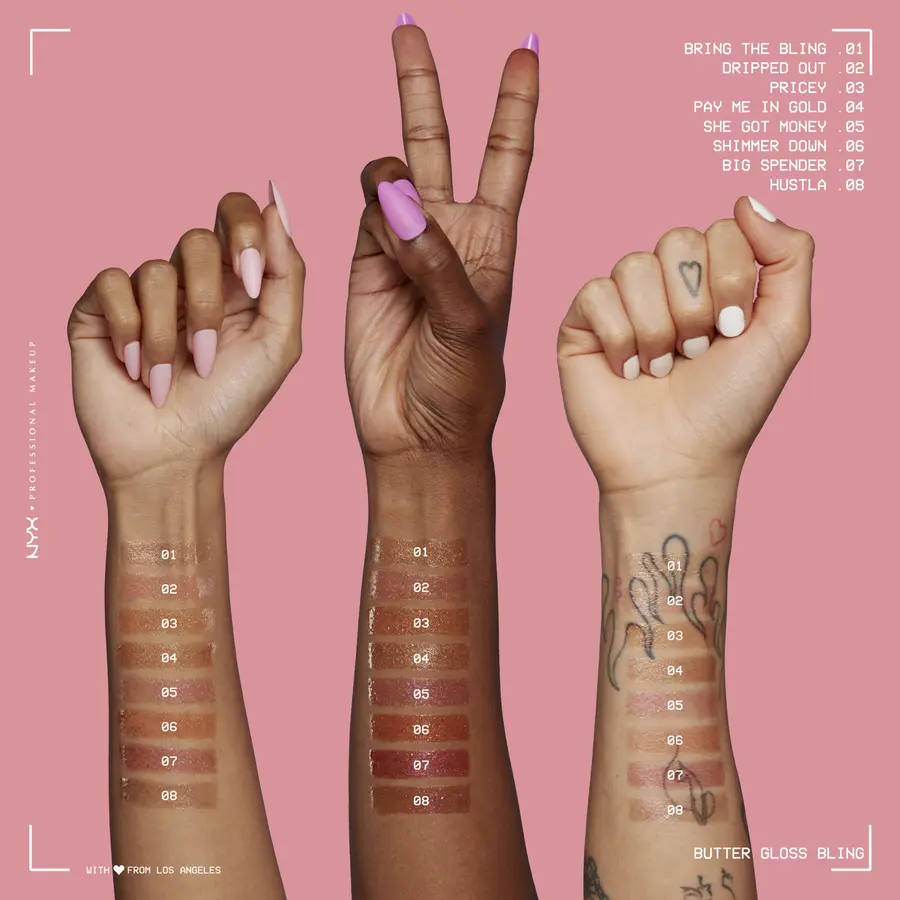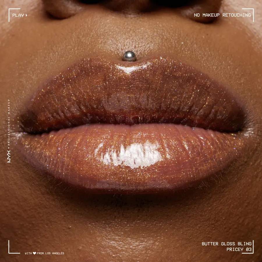 Дорогой блеск для губ Butter Gloss Bling от NYX Professional Make up сочетает в себе маслянисто-гладкую формулу с аккуратным блеском для глянцево-блестящих губ. Коричневый блеск для губ создает при этом соблазнительный мерцающий блеск для губ в стиле 90-х годов. Веганский блеск для губ с подсветкой, не содержащий ингредиентов животного происхождения, легко наращивает свое покрытие, не оставляя ощущения липкости на губах.