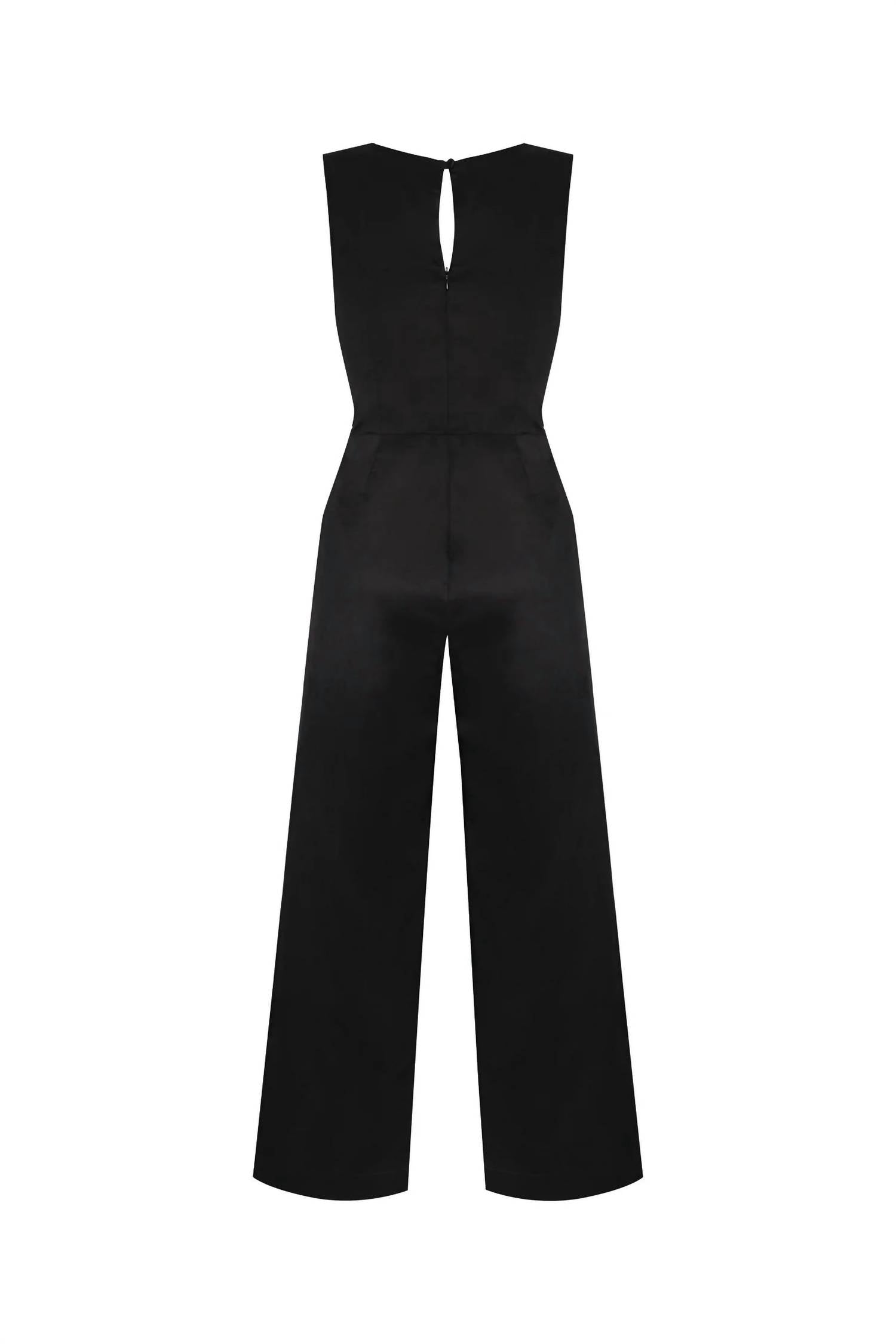 Идеальный выбор наряда, когда вам нужно что-то быстро надеть и при этом вы хотите выглядеть непринужденно круто. Откройте для себя элегантность DALIA JUMPSUIT от Encantadore, шикарное дополнение к любому гардеробу. Этот комбинезон без рукавов, изготовленный из хлопковой смеси 96% хлопка и 4% эластана, имеет V-образный вырез и привлекательный вырез спереди. Его сплошной черный оттенок, высокая талия и свободный крой с широкими штанинами делают его универсальной вещью для дня и ночи. Застежка удобно регулируется с помощью молнии, и он подходит по размеру для вашего удобства.