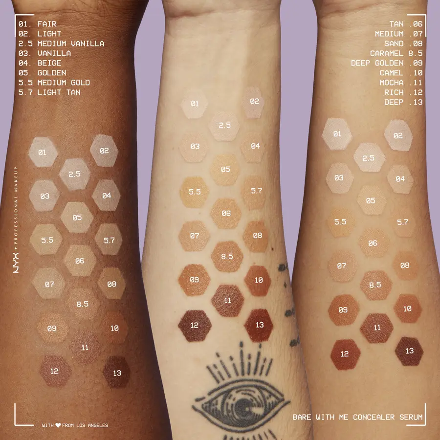 Сыворотка-консилер NYX Professional Makeup Bare With Me сочетает в себе эффективность сыворотки и преимущества консилера. Уже через короткое время кожа приобретает состояние восстановления. Сыворотка для восстановления кожи маскирует неровности на коже благодаря мощному среднему покрытию, смягчает красные или воспаленные участки кожи. Дышащая формула адаптируется к любому тону кожи, и ее особенно легко растушевать – для естественного послевкусия. Содержащийся в нем экстракт гриба тремелла обладает противовоспалительным действием и увлажняет кожу, не закупоривая поры. Зеленый чай и цика успокаивают и успокаивают раздраженную кожу.