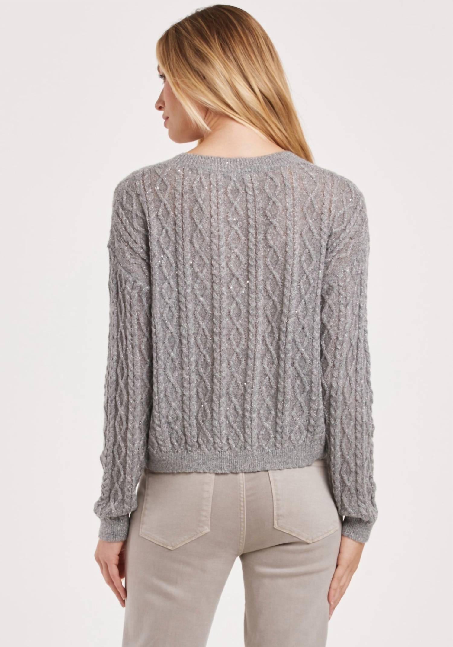 Этот свитер с пайетками косичной вязки имеет свободный крой и изготовлен из прочной смеси 40% акрила, 27% нейлона, 20% полиэстера и 13% шерсти. Длина изделия составляет 21,5 дюйма, длина рукава — 20 дюймов, а обхват груди — 40 дюймов в размере small. Стирать вручную в холодной воде и сушить на горизонтальной поверхности, придав форму. Подходит для повседневных и нарядных случаев.