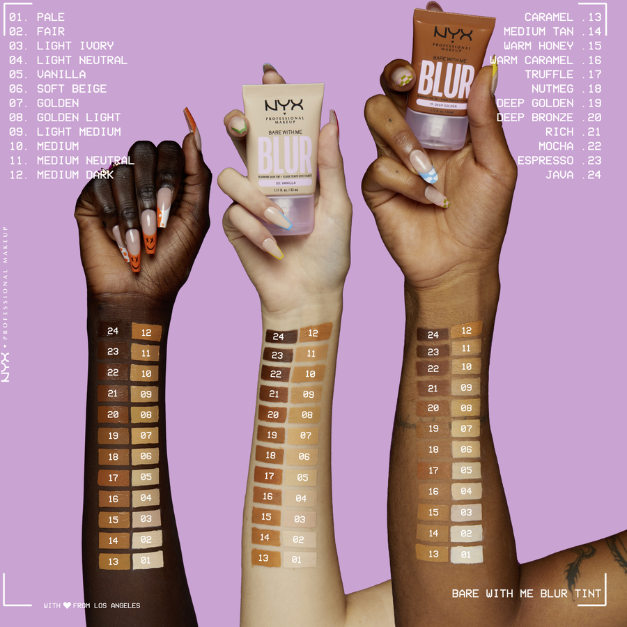 Лучше, чем фильтр! Оттенок Bare With Me Blur оттенка 09 Light Medium позволяет избавиться от пятен на коже с помощью эффекта размытия. Подобно усилителю цвета лица, она осветляет и усиливает естественный тон кожи благодаря среднему покрытию. Расширяются большие поры, успокаивается покраснение и впитывается излишки кожного сала – даже нарушение пигментации компенсируется легким тональным кремом NYX Professional Makeup. Для этого в веганской формуле используются 3 супер активных ингредиента: порошок матча в качестве антиоксиданта, корректирующая шелковая пудра и осветляющий порошок ниацинамидов. Таким образом, оттенок кожи приобретает ровный и мягкий оттенок.
