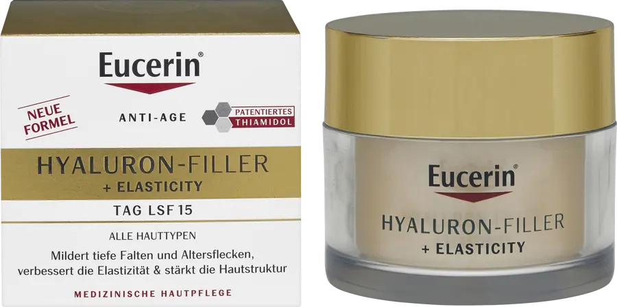 Дневной уход Eucerin Hyaluron Filler + Elasticity SPF 15 - это антивозрастной дневной уход, который разглаживает даже глубокие морщины, улучшает эластичность кожи и корректирует пигментные пятна. Уникальная формула специально разработана для смягчения выраженных признаков старения кожи.
