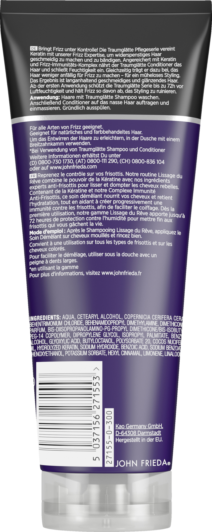 Возьмите вьющиеся волосы под контроль! Серия средств для ухода за прямыми волосами Dream сочетает в себе кератин с нашим опытом в области завивки, чтобы сделать непослушные волосы эластичными и прирученными. Обогащенный кератином и комплексом для защиты от вьющихся волос, кондиционер для разглаживания волос Dream увлажняет и увлажняет волосы. В то же время он помогает сделать волосы менее склонными к завиванию - для легкой укладки. В результате получаются стойкие эластичные и блестящие волосы. Начиная с первого нанесения, серия Dream Glatter защищает от влаги на срок до 72 часов, предотвращая завивание волос и, таким образом, предотвращая порчу укладки.