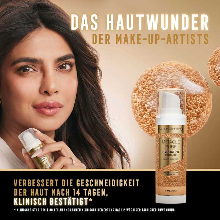 Благодаря Miracle Pure Hydratint Essence Foundation от MAX FACTOR в цвете 5 Medium кожа приобретает освежающий прилив влаги, который будет поддерживать ее бодрость в течение всего дня. Благодаря охлаждающей кожу формуле, которая на 71% состоит из воды и обогащена питательным бакучиолом, кожа становится интенсивно увлажненной. Для достижения оптимального результата перед нанесением смешайте уникальные микрокапсульные пигменты на тыльной стороне ладони, чтобы активировать их. Благодаря нежной текстуре и легкому покрытию, этот тональный крем можно легко растушевать, будь то кисточкой для макияжа или пальцами. Это создает естественную отделку с ярким сиянием. Идеально подходит в качестве увлажняющей основы под макияж или при самостоятельном нанесении, придает коже свежий, сияющий цвет лица.