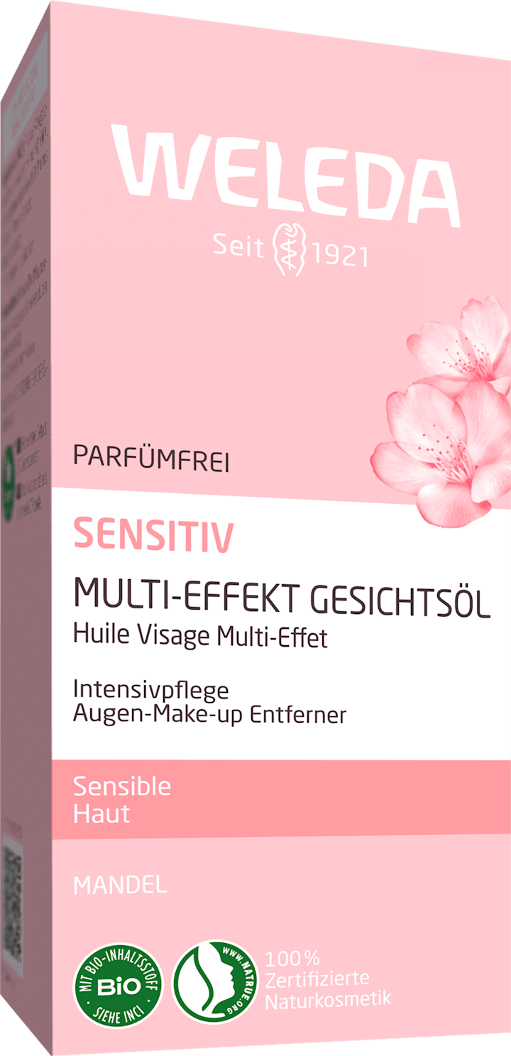 Масло для лица Weleda Multi-Effect Sensitive идеально подходит для ежедневного ухода в ванной комнате. Масло идеально подходит для снятия водостойкого макияжа с глаз. Кроме того, средство не содержит отдушек и обогащено органическим миндальным маслом, которое успокаивает раздраженную кожу.