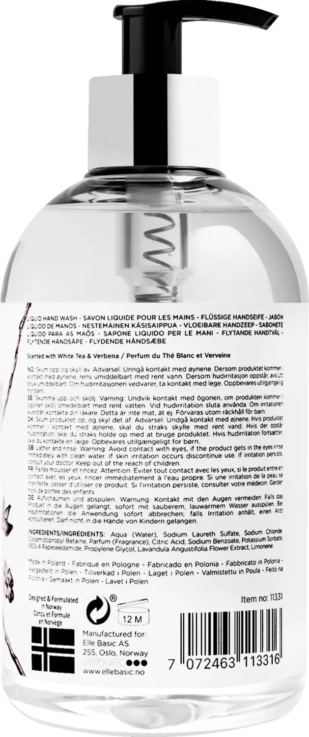 Жидкое мыло Natural Basics насыщено освежающим ароматом белого чая и вербены. Мыло для рук не содержит парабенов и обеспечивает деликатный уход за кожей благодаря своим натуральным ингредиентам. Стильный цветочный дизайн превращает любое мытье рук в роскошный момент, когда вы чувствуете себя хорошо.
