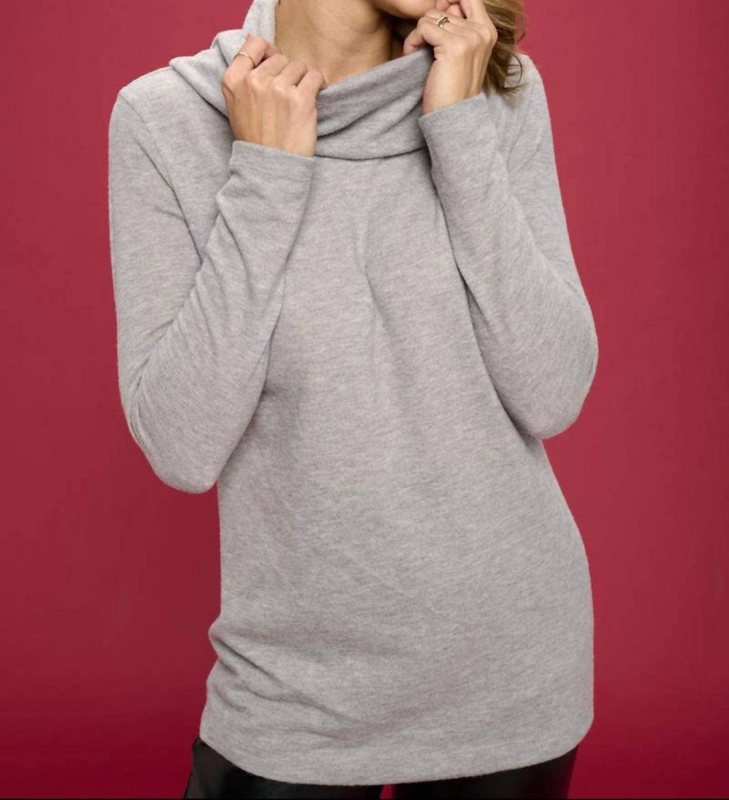 Вязаный свитер с воротником-хомут серого цвета reneec.