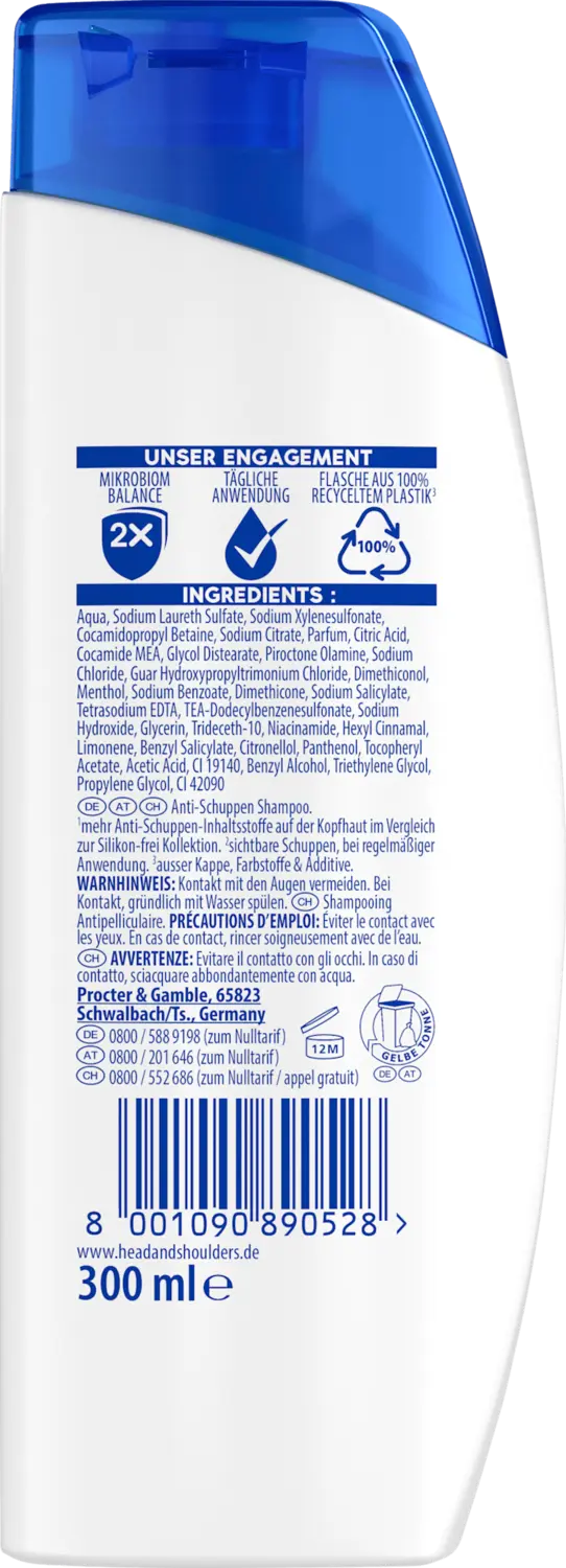 Шампунь против перхоти для головы и плеч Citrus Fresh 300 мл особенно подходит для жирных волос и эффективен даже при стойкой перхоти. Его цитрусовый аромат и формула баланса микробиома целенаправленно устраняют причину появления перхоти и восстанавливают микробиом кожи головы. Кроме того, волосы увлажняются при каждом мытье и борются с проблемами кожи головы.