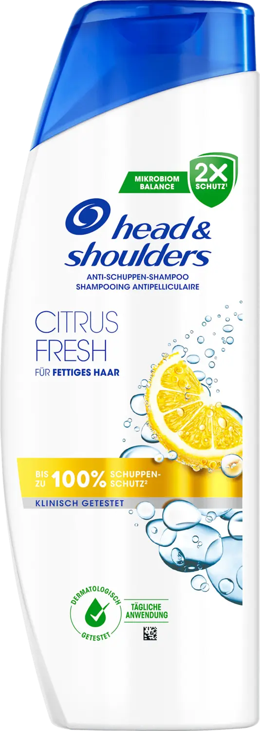Шампунь против перхоти для головы и плеч Citrus Fresh 500 мл особенно подходит для жирных волос и эффективен даже при стойкой перхоти. Его цитрусовый аромат и формула баланса микробиома целенаправленно устраняют причину появления перхоти и восстанавливают микробиом кожи головы. Кроме того, волосы увлажняются при каждом мытье и борются с проблемами кожи головы.