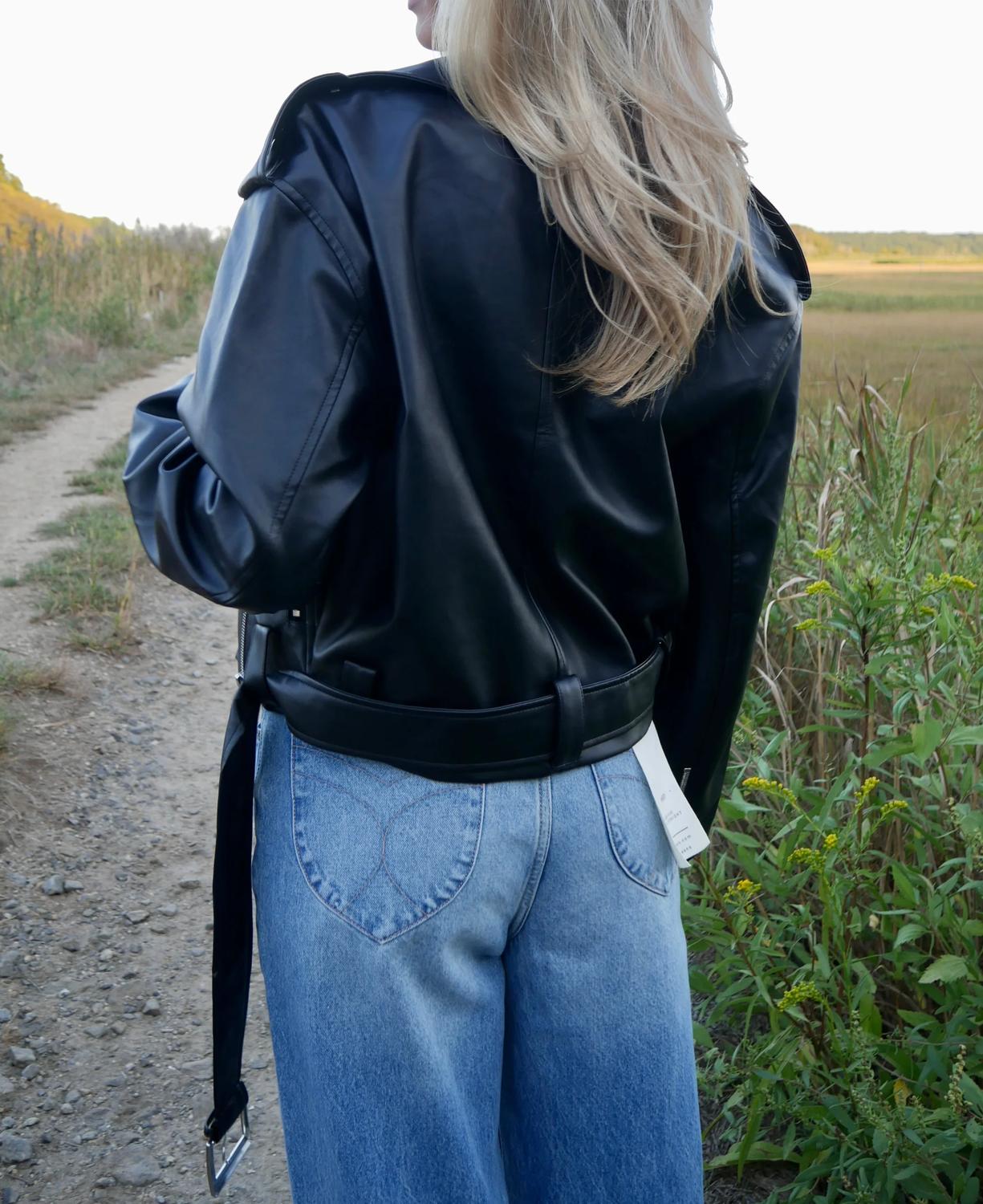 Укороченная байкерская куртка имеет свободный силуэт, подчеркнутый стильными заостренными лацканами и привлекательной серебристой фурнитурой. Она включает в себя застежку-молнию спереди для удобства ношения и современного штриха. Изготовленная из 100% полиуретана, эта куртка имеет элегантный вид и обеспечивает долговечность. Для ухода рекомендуется ручная стирка в холодной воде. Длина от плеча до подола составляет 21 дюйм, что делает ее модным дополнением к любому наряду.