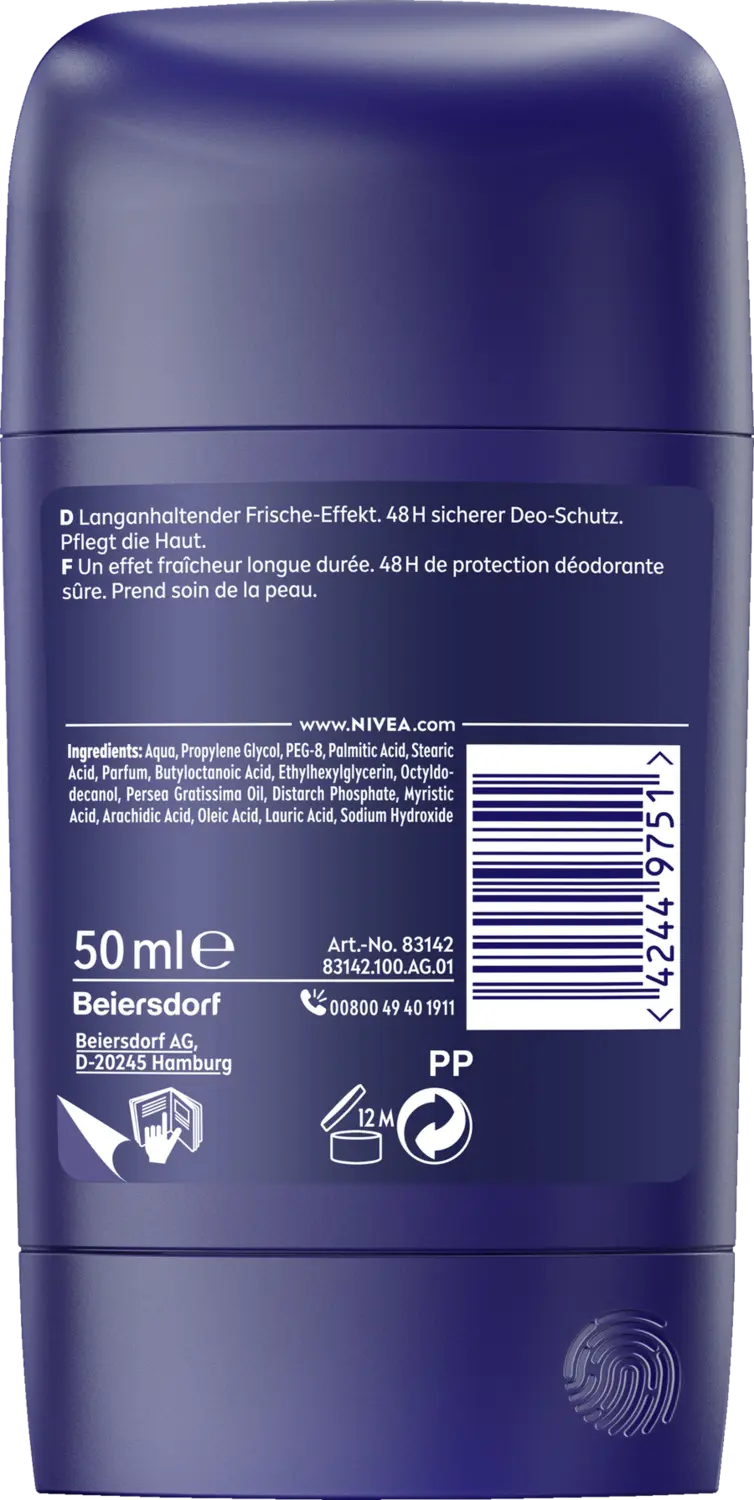 NIVEA MEN Fresh Active Stick обеспечивает ощущение свежести в течение всего дня и обеспечивает длительную чистоту и свежесть кожи. Дерматологически проверенные на совместимость с кожей дезодоранты Derma 48h обеспечивают активную защиту: они работают с кожей для надежной и эффективной защиты от пота и запаха.