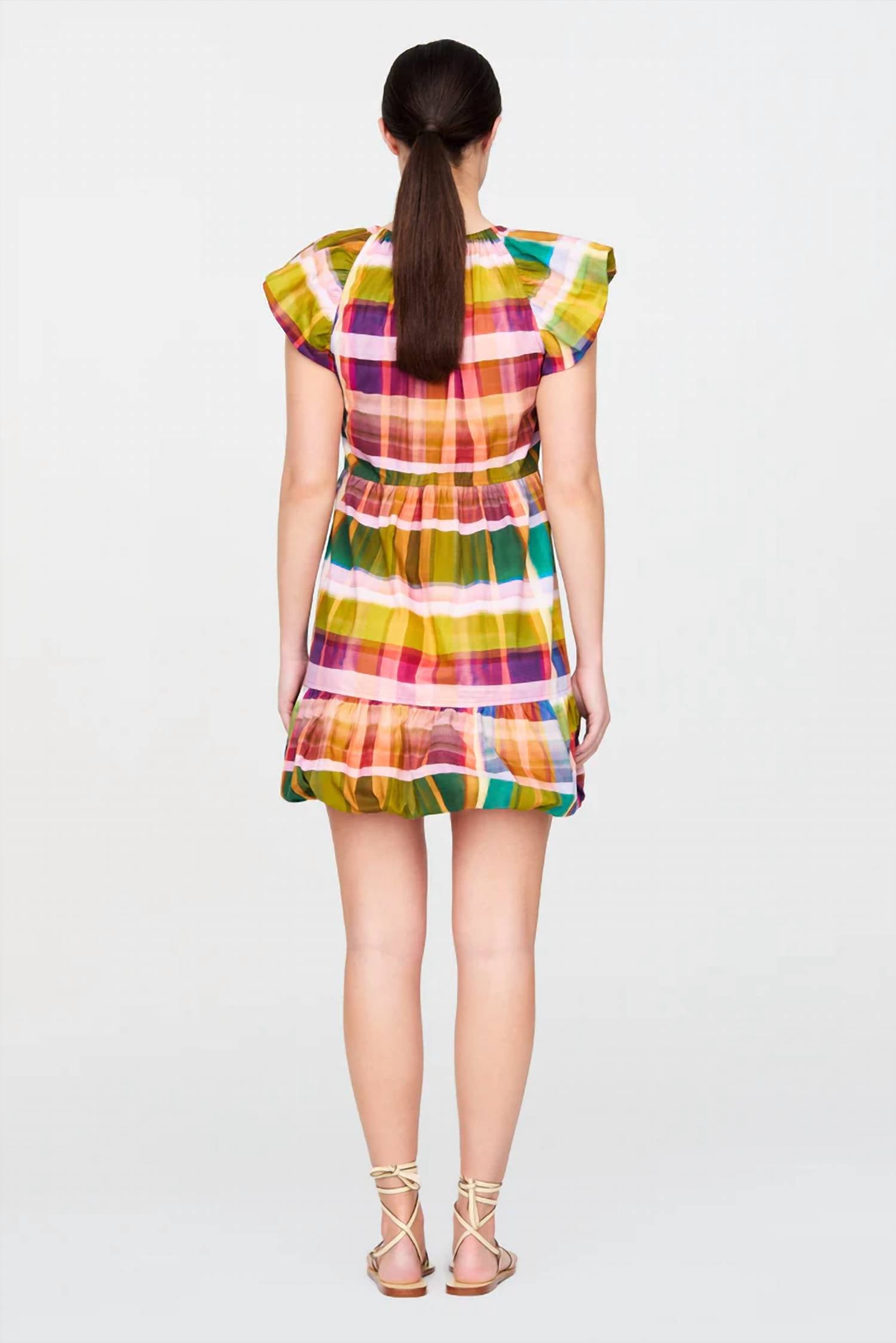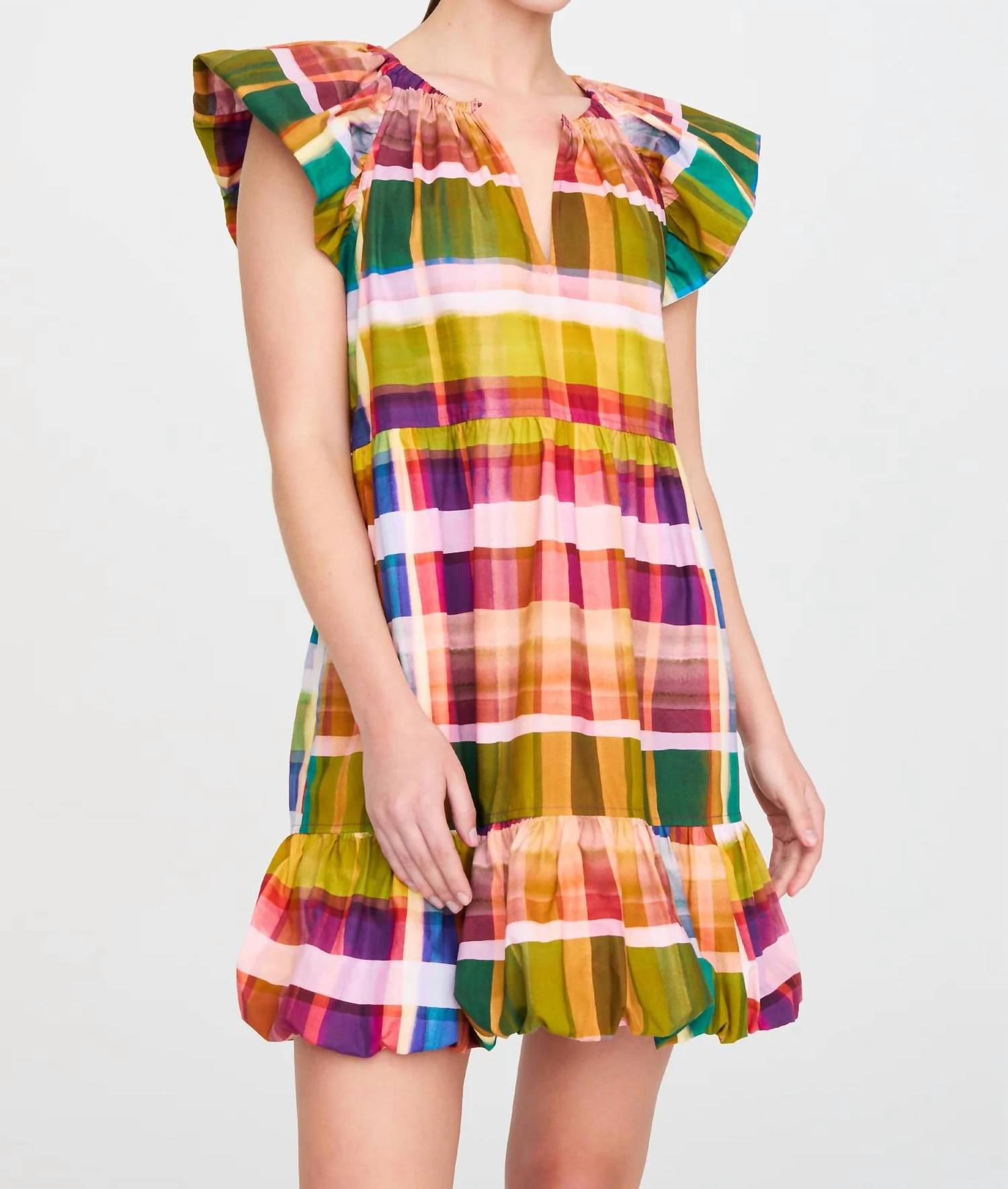 Яркое воплощение непринужденной элегантности и роскоши. Разработано в пленительной, электрической шотландской клетке Мадрас. Силуэт без застежек. Гарантирует, что вы можете скользить к изысканности без суеты. Игривый подол с пузырьками и V-образный вырез. Дополнительная застежка на крючок и петли. Изготовлено из 100% хлопка. Обещает свободную посадку. Простота в уходе, просто стирайте в машине на щадящем режиме и сушите в подвешенном состоянии, чтобы сохранить свежий вид. Беззаботное очарование и высококачественное мастерство.