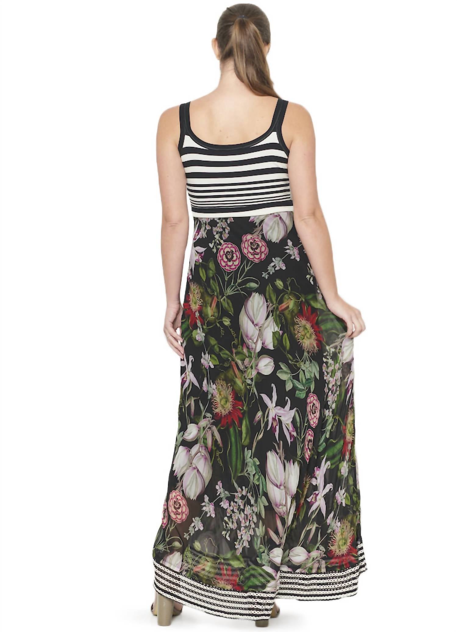 Кто не любит хорошее макси-платье? Это то, за которым вы будете тянуться сезон за сезоном. Платье-макси-майка Botanical — любимый силуэт от уличной моды Beate Heymann. Этот стиль, всегда популярный и непринужденный, доступен в индивидуальном цветочном принте с контрастным трикотажным лифом и бретельками для белья. Утяжеленная контрастная полоса на подоле придает этому удивительному платью немного свободы. Длина макси. Идеально подходит для нарядов на мероприятия и свадьбы или для повседневного ношения в городе. 100% вискоза-шифон, лиф хлопок/эластан