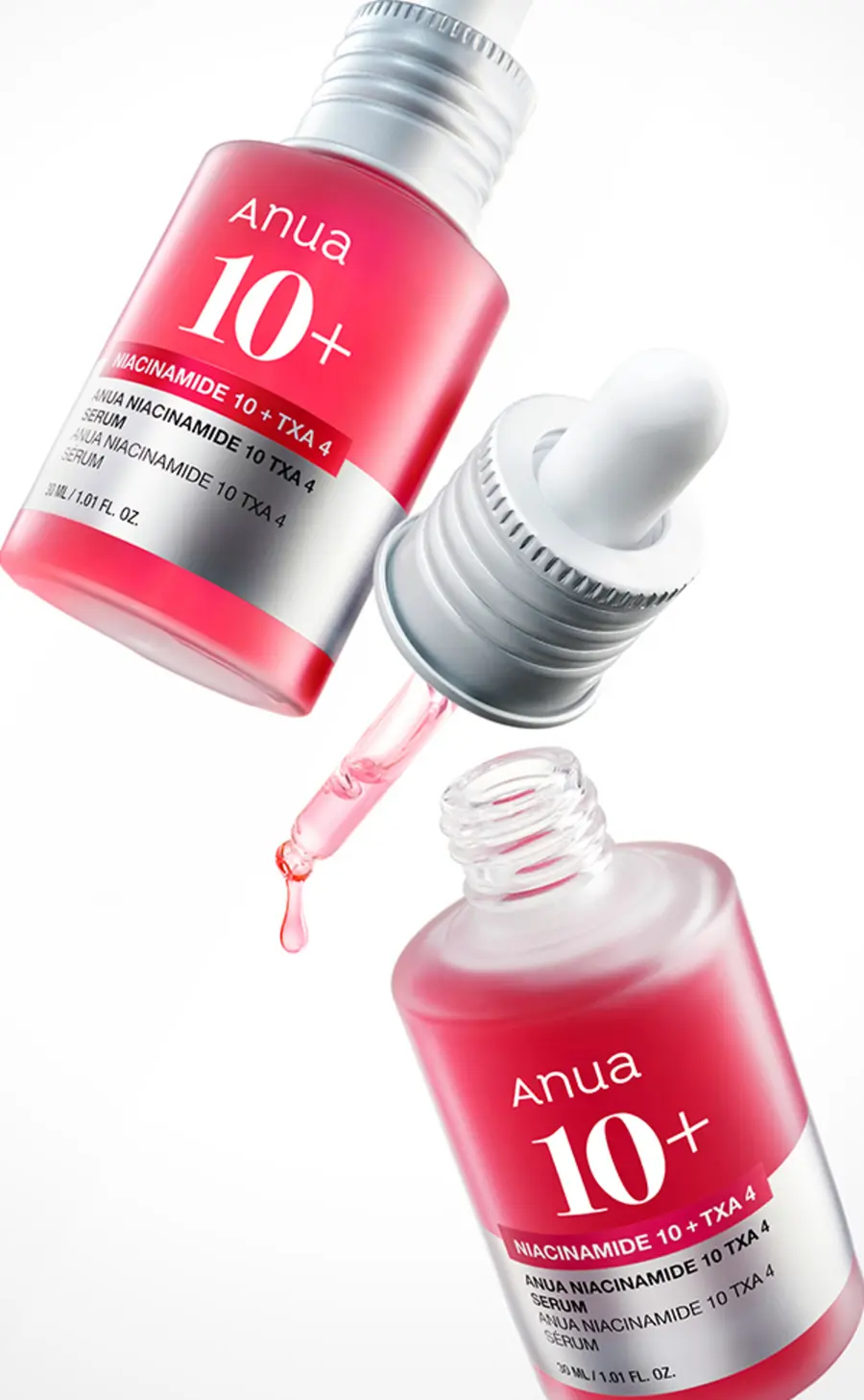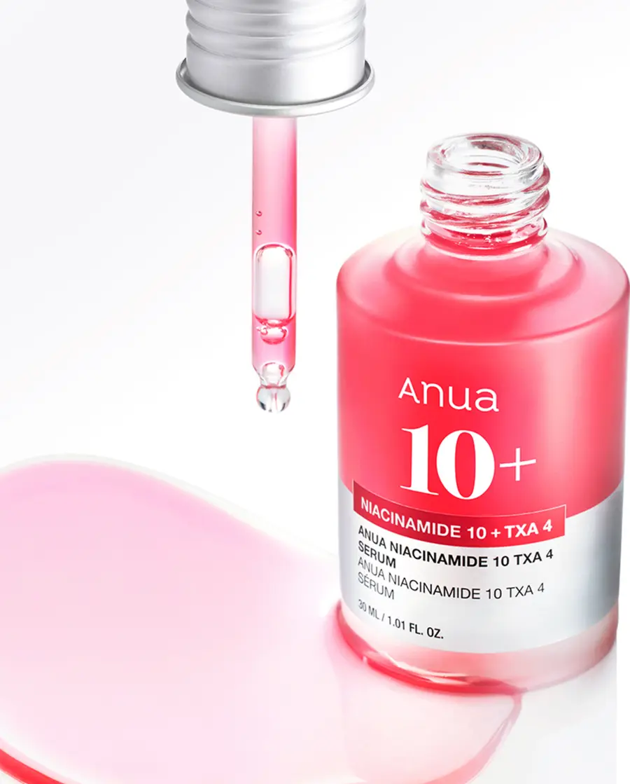 Сыворотка для коррекции темных пятен Anua Niacinamide 10% + TXA 4% 30 мл - эффективное средство от темных пятен, гиперпигментации и неровного тона кожи. Эта сыворотка, содержащая высокую концентрацию ниацинамида и транексамовой кислоты (TXA), уменьшает обесцвечивание, осветляет кожу и придает ей чистый сияющий цвет лица. Кроме того, он укрепляет кожный барьер и сохраняет его увлажненным.