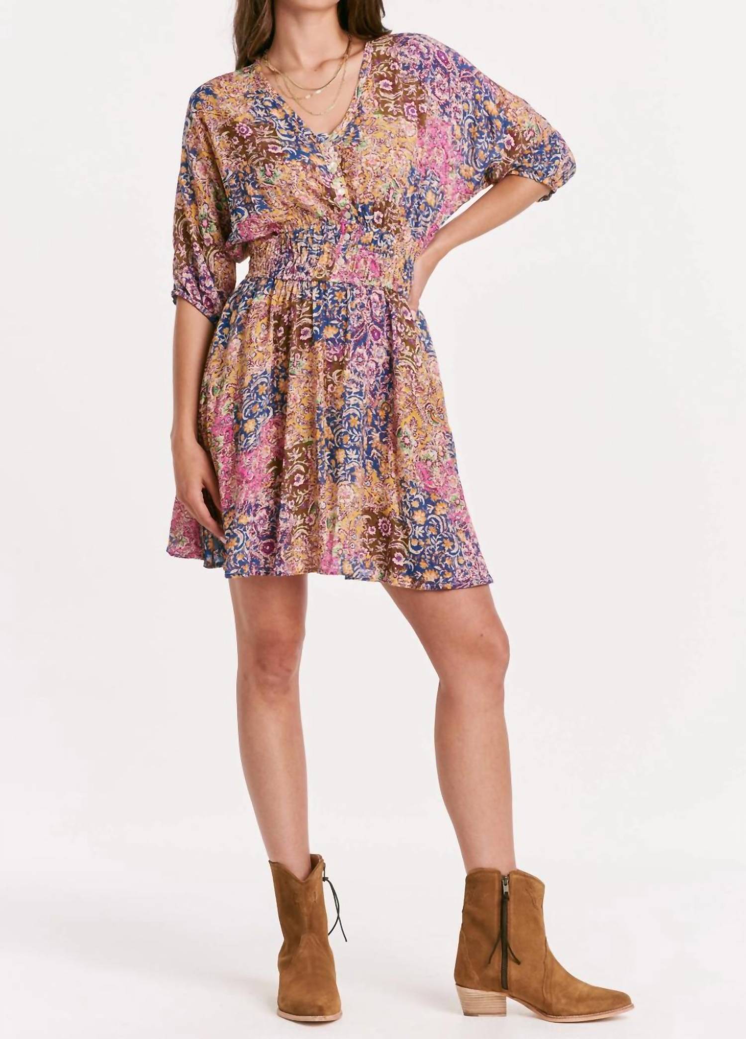 Это мини-платье с присборенной талией имеет длинные рукава, V-образный вырез с застежкой на пуговицы спереди и боковые карманы. Оно выполнено из натурального холста с многопринтовым тканым дизайном и свободным кроем. Длина тела от верхней точки плеча (HPS) составляет 35 1/2 дюйма, длина рукава — 17 дюймов, а обхват груди — 44 дюйма (размер small). Изготовлено из 100% вискозы. Машинная стирка в холодной воде, сушка в стиральной машине при низкой температуре. Импортируется.