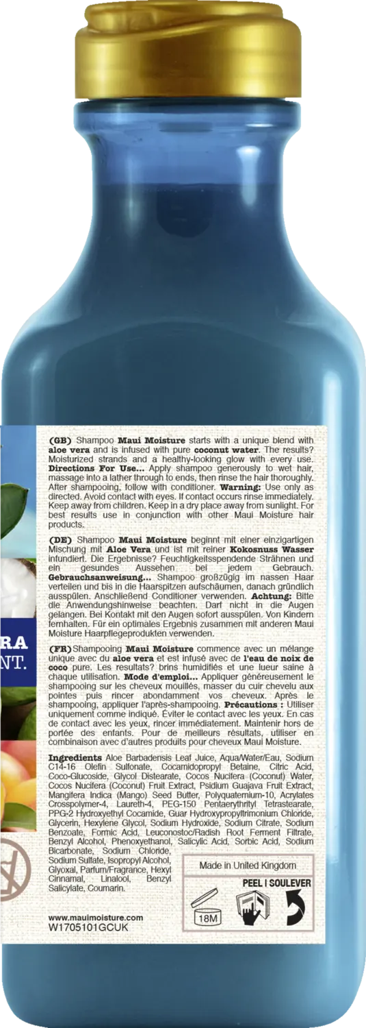Увлажняющий увлажняющий шампунь с кокосовым молоком Maui для сухих волос, содержащий кокосовое молоко, экстракт гуавы и масло манго, помогает укротить естественные локоны и питает волосы.