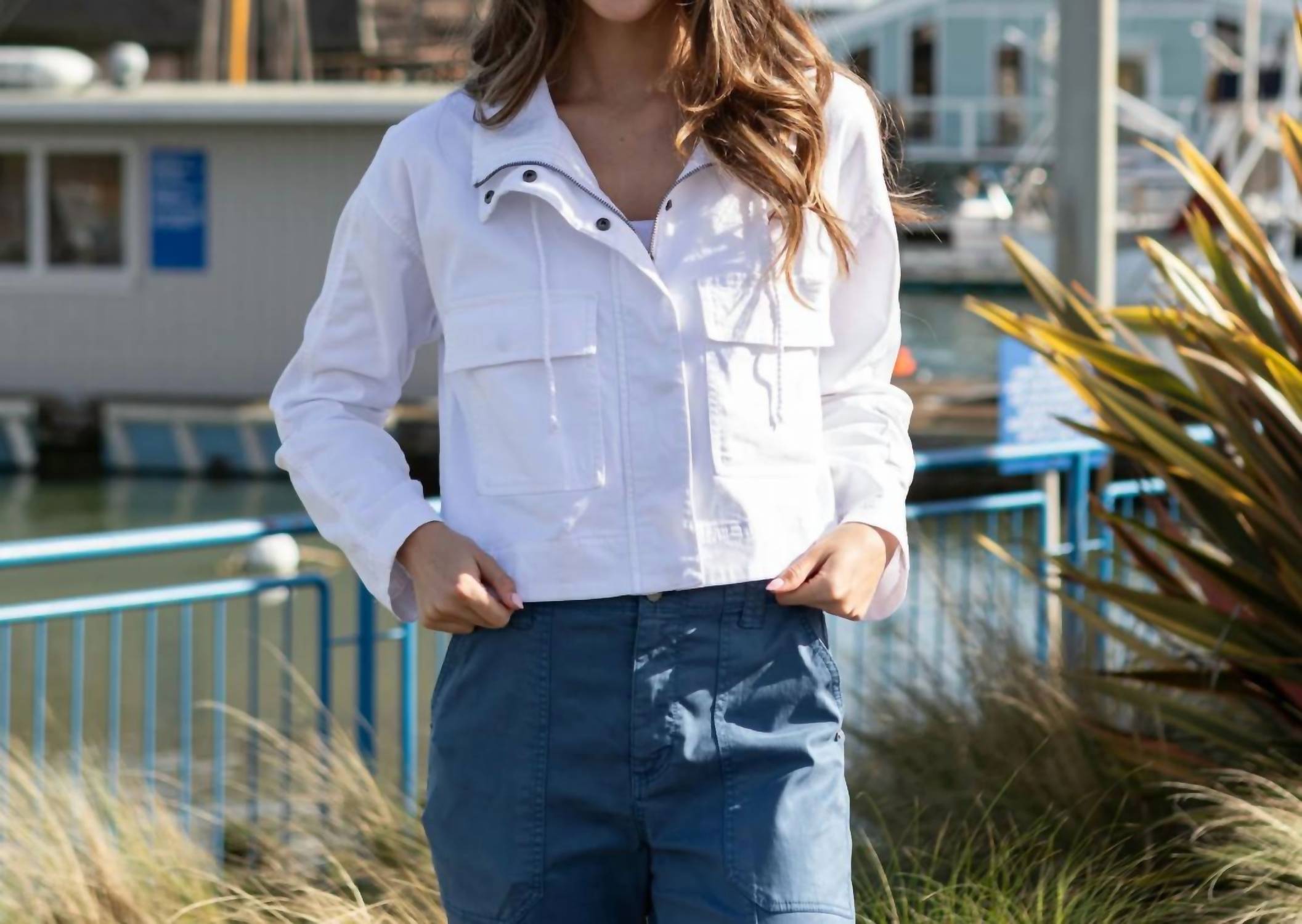 Милая, повседневная и удобная. Эта куртка просто необходима. Представляем куртку Marrakech Umi, стильный и легкий выбор для повседневной носки в классическом белом цвете. Эта куртка имеет длинные рукава, воротник-стойку и удобные широкие передние карманы. Изготовленная из 52% лиоцелла, 45% хлопка и 3% спандекса, она обеспечивает удобную посадку с застежками на пуговицах и молнии для универсальности. Сделана для легкого ухода - просто стирайте в машине на щадящем режиме с похожими цветами и сушите в стиральной машине при низкой температуре.