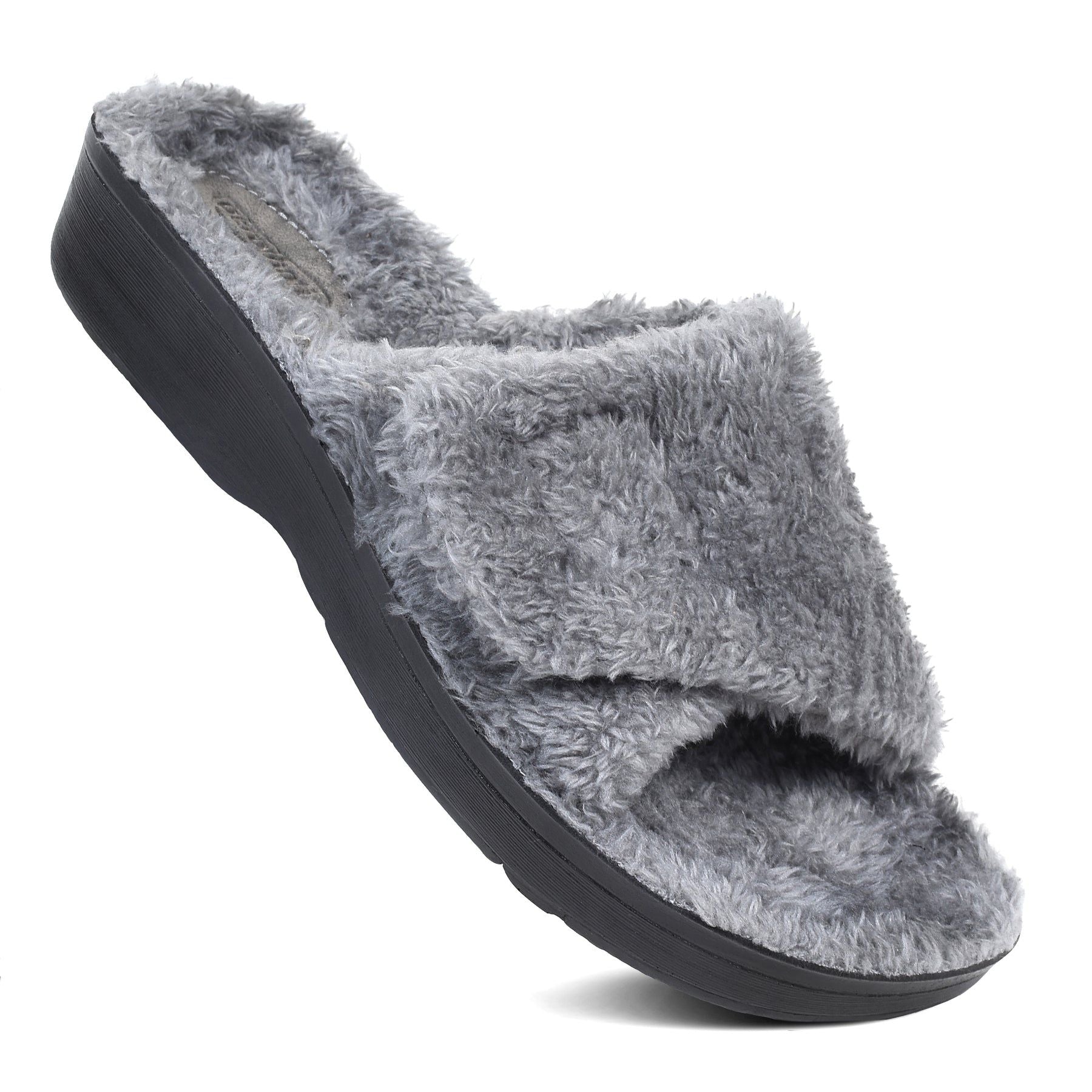Погрузитесь в уютный комфорт с осенними шлепанцами Gemma с регулируемым ремешком на липучке, который обеспечивает идеальную посадку по фигуре. Эти сандалии, обернутые в плюшевый искусственный мех, дарят роскошное ощущение вашей коже, что делает их идеальными для ношения в течение всего дня. Отдыхая дома или отправляясь на прогулку, Gemma легко сочетает в себе стиль и универсальность. Подошва из полиуретана (PU) обеспечивает отличную амортизацию, снимая нагрузку с ваших ног и суставов, позволяя вам ходить с комфортом. Биомеханически разработанные ортопедические сандалии утешают ваши своды стопы, обеспечивая максимальную поддержку и идеальную устойчивость. Глубокая пяточная чаша помогает стабилизировать стопу и улучшает выравнивание. Одобрено Американской медицинской ассоциацией подиатров (APMA).