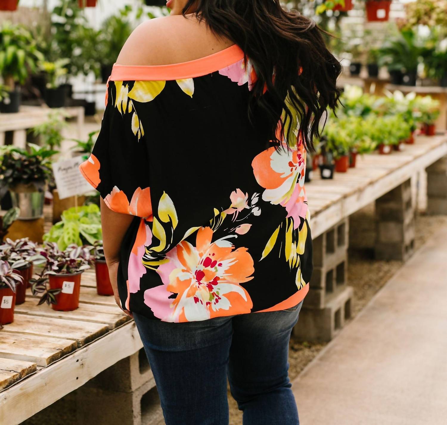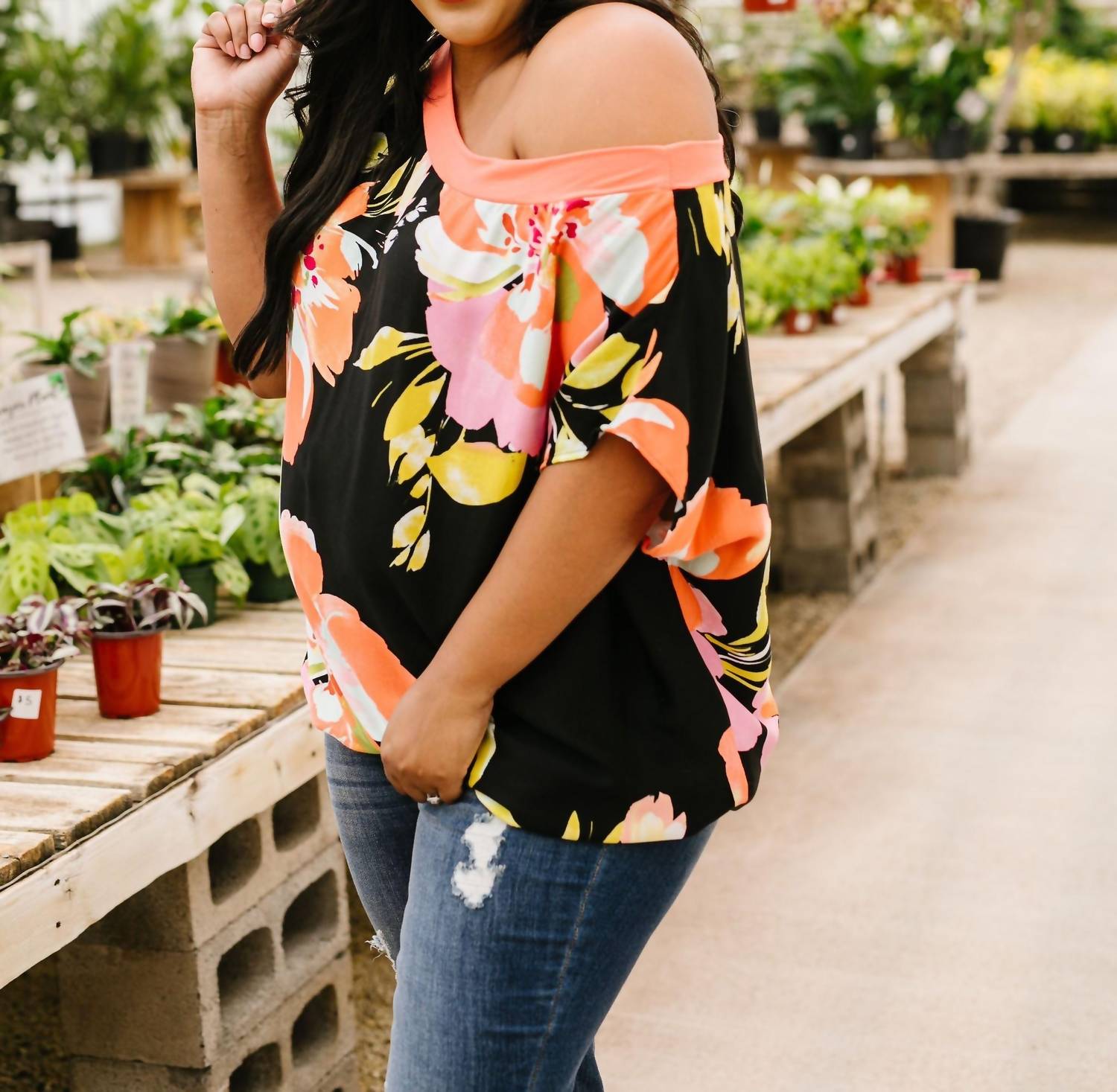 Яркие розовые и коралловые цветы; пояс из кораллового трикотажа на вырезе и подоле немного тянется, что придает изделию соблазнительный вид, который можно носить на одном или обоих плечах.